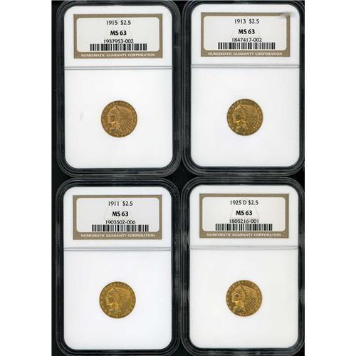 Includes: 1911 NGC MS63, 1913 NGC MS63, 1915 NGC MS63, 1925-D NGC MS63. Lot of 4 coins.