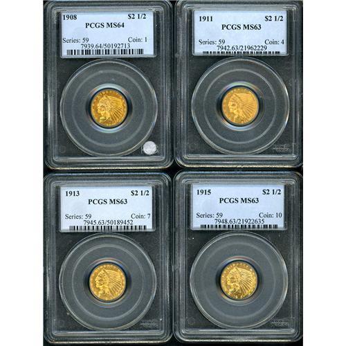 Includes: 1908 PCGS MS64, 1911 PCGS MS63, 1913 PCGS MS63, 1915 PCGS MS63. Lot of 4 coins.