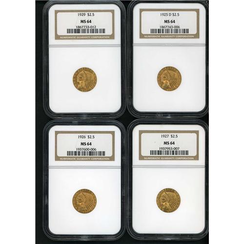 Includes: 1925 D NGC MS64, 1926 NGC MS64, 1927 NGC MS64, 1929 NGC MS64. Lot of 4 coins.