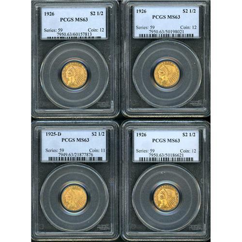 Includes: 1925 D PCGS MS63, 1926 PCGS MS63, 1926 PCGS MS63, 1926 PCGS MS63. Lot of 4 coins.