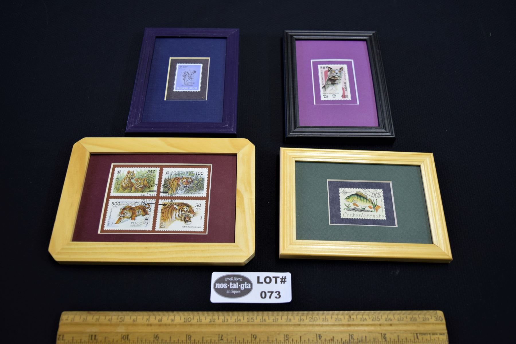 Lot of Four (4) Matted and Framed International Stamps