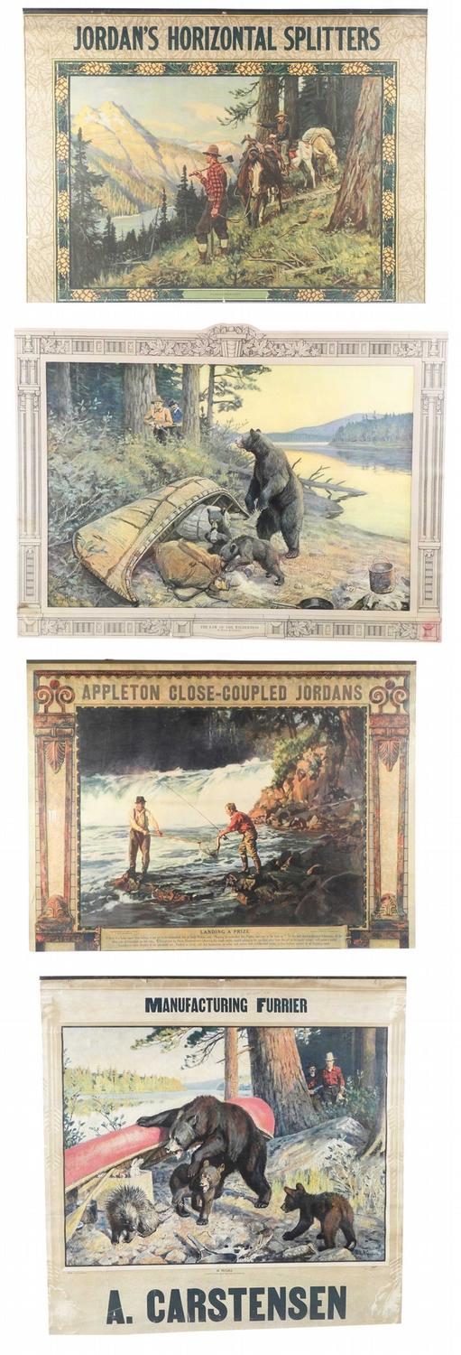 Lot of Four Calendar Tops with Phillip R. Goodwin images. "In Trouble", "The Law of the Wilderness", "Landing a Prize" and "Forest Rangers". A few minor tears otherwise good condition. Aprox 28 X 24 inches.