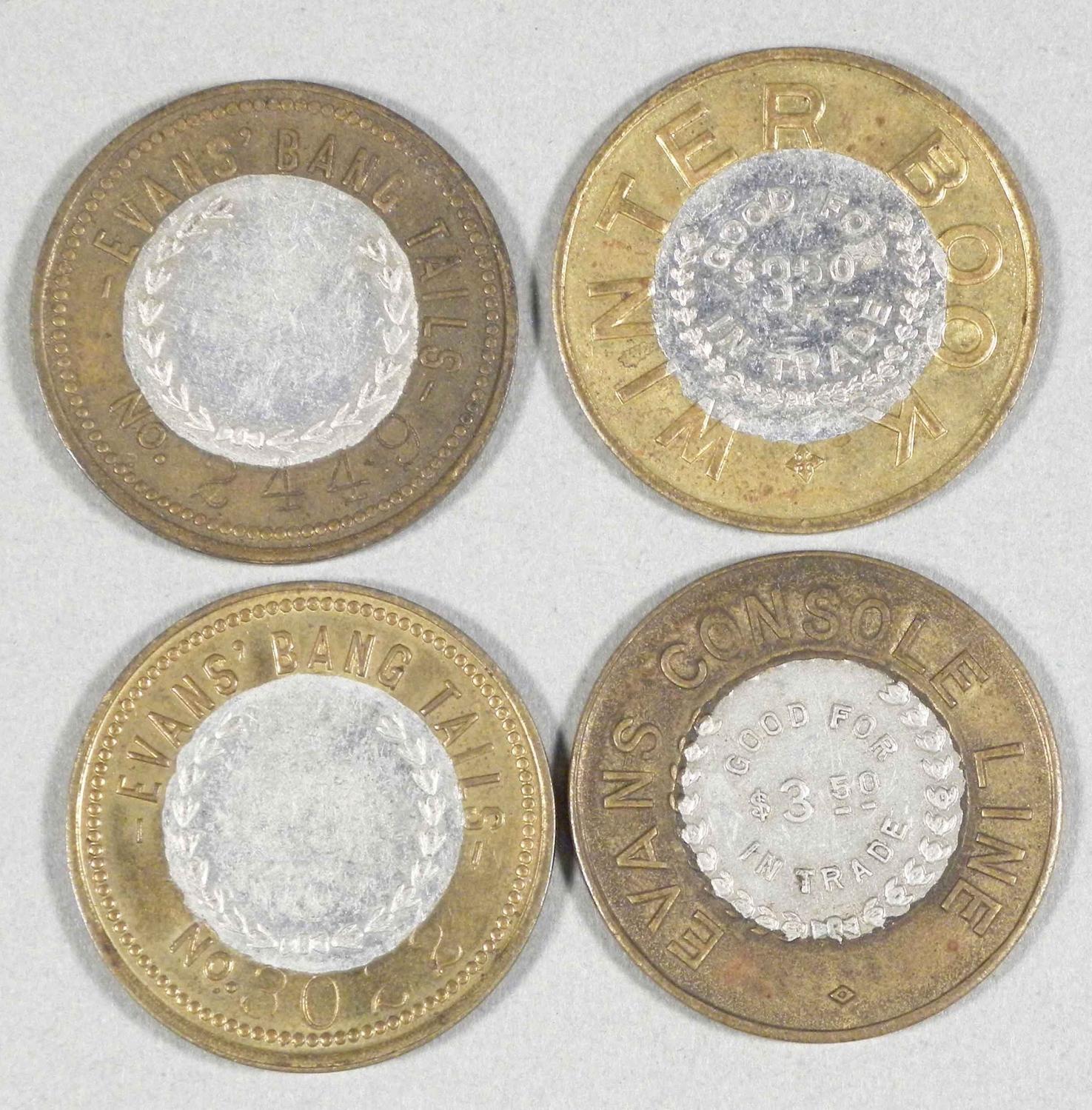 Lot of 4 H.C. Evans Tokens. Good for $3.50. "Winter Book". Original condition. 1 1/8 inch diameter. Starting bid $20
