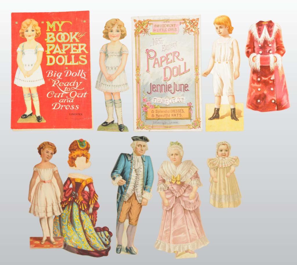 Description ND. "Karl King", "Grace Green", "Jennie June", and the clothing for "Fanny Field" are in good to fine condition. No set is complete and the lot shows age and wear.