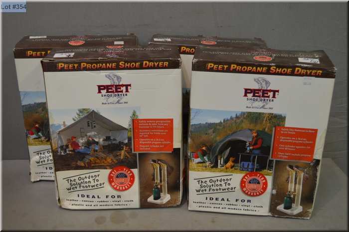 Lot of Four Peet Propan Shoe Dryers in orig boxes ( appear as new ) some damage to boxes - no propane cylinders Retail $ 85.00 each