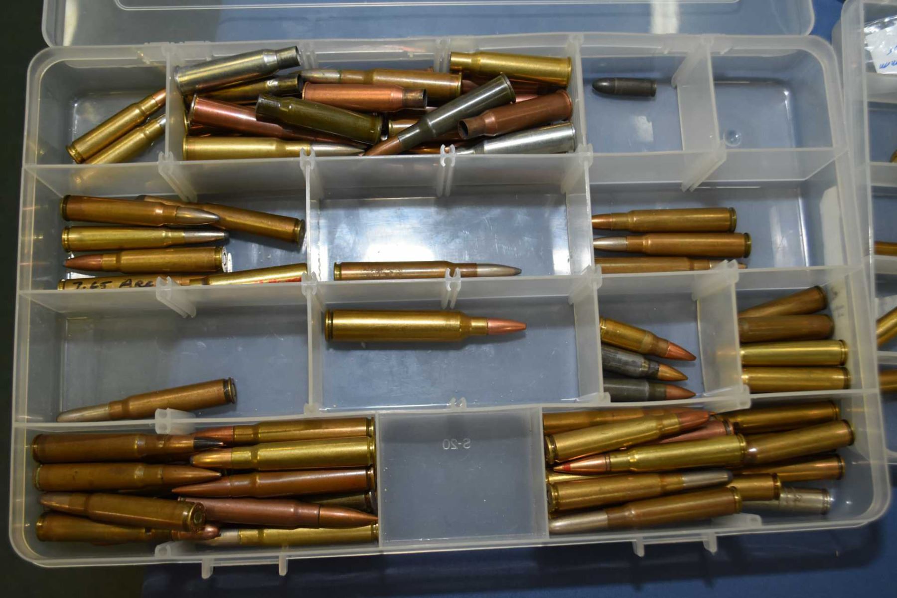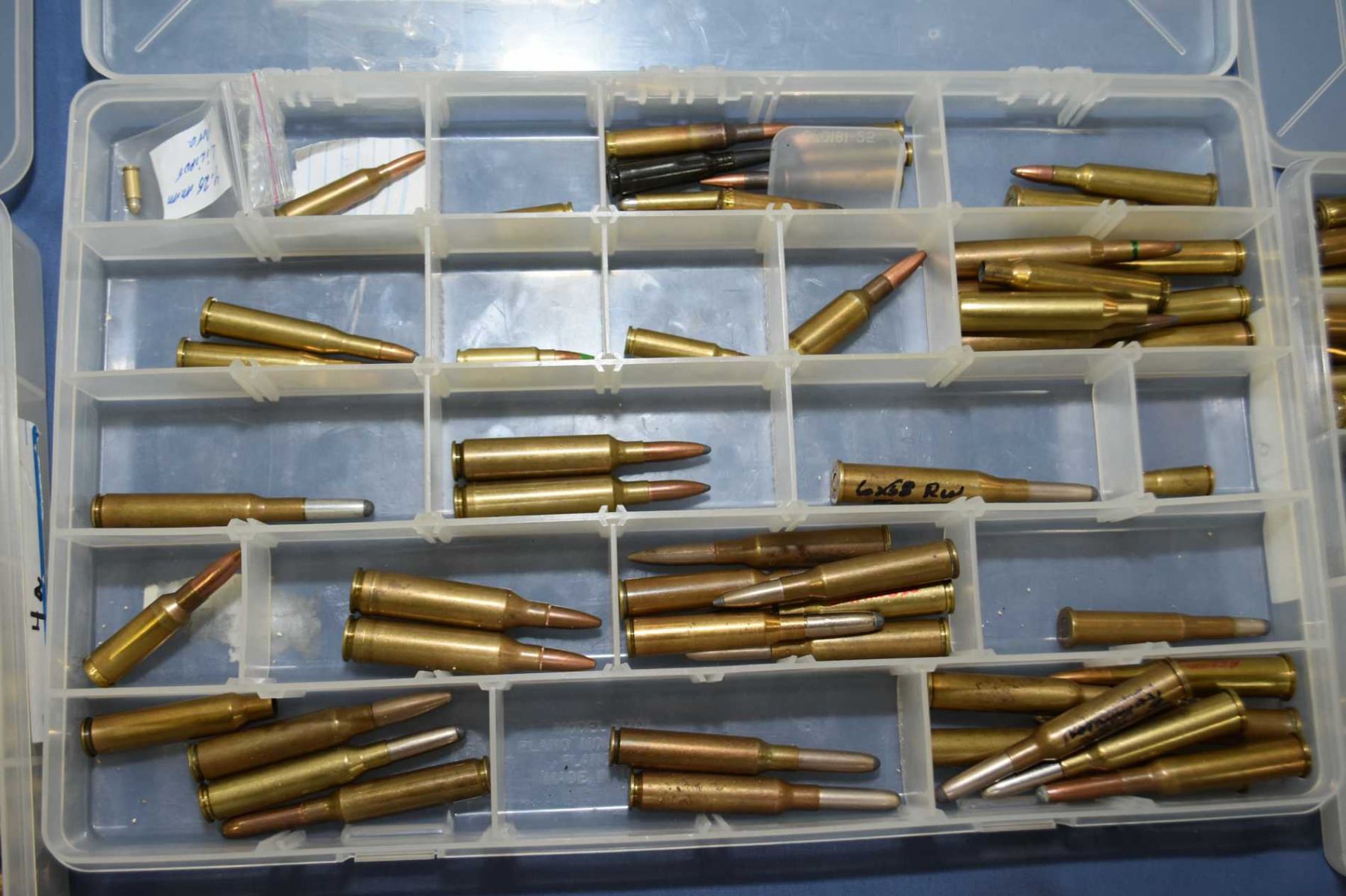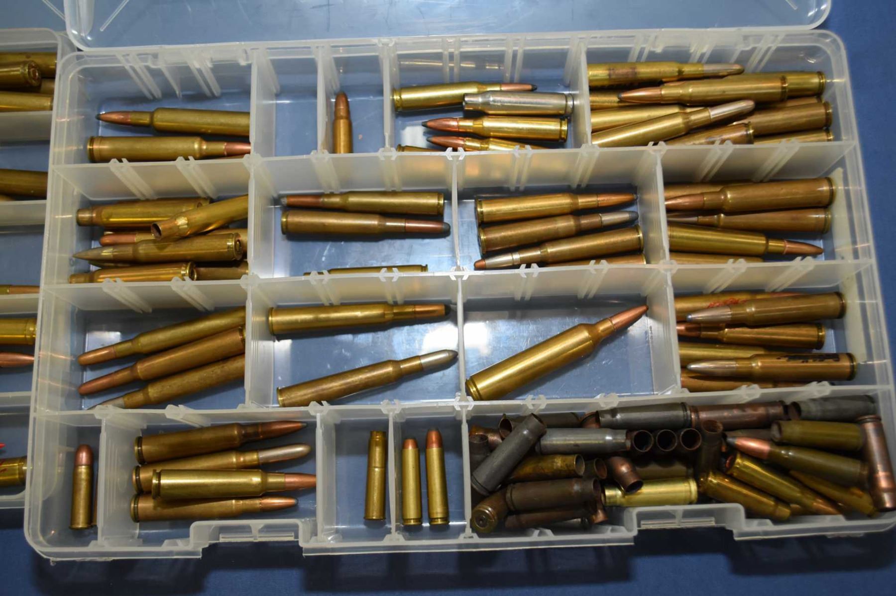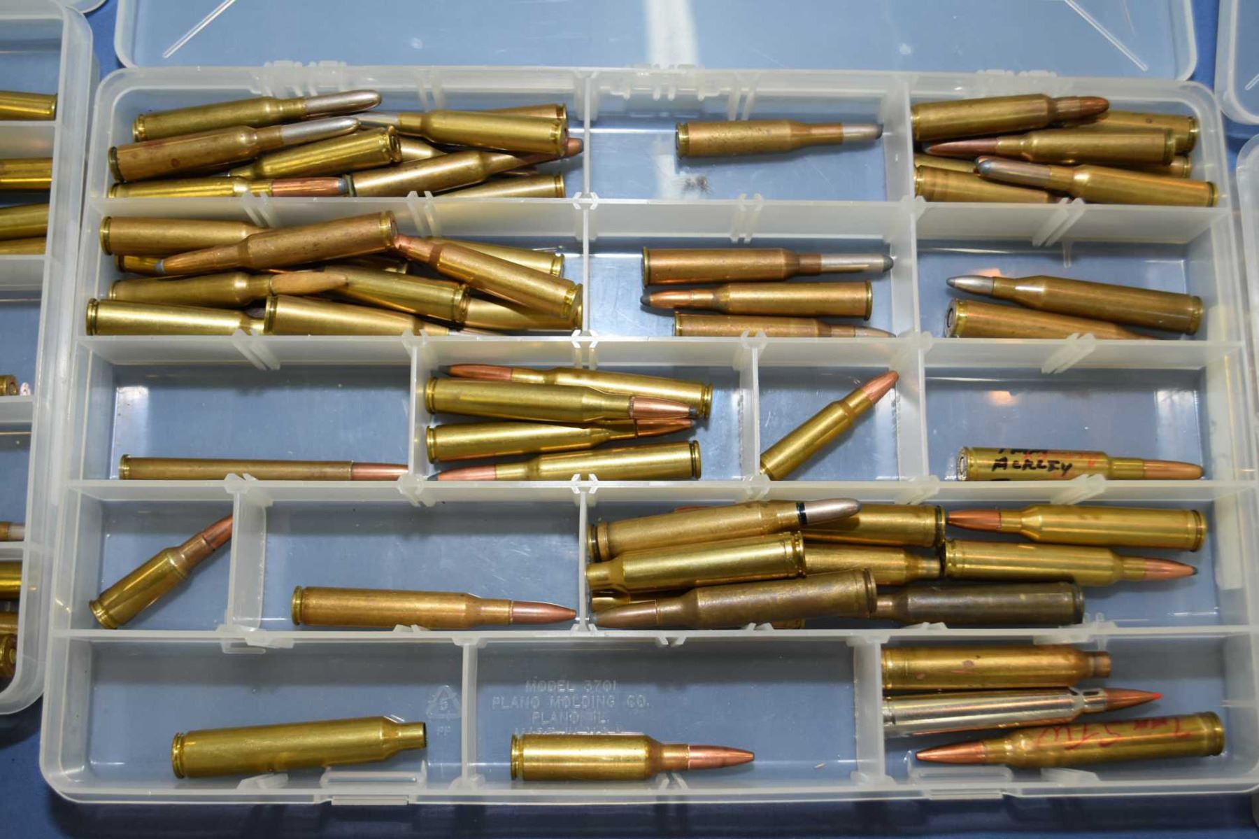 Lot of Four Plastic Trays : Collector's Ammo Samples & Brass with index cards on listing of contents