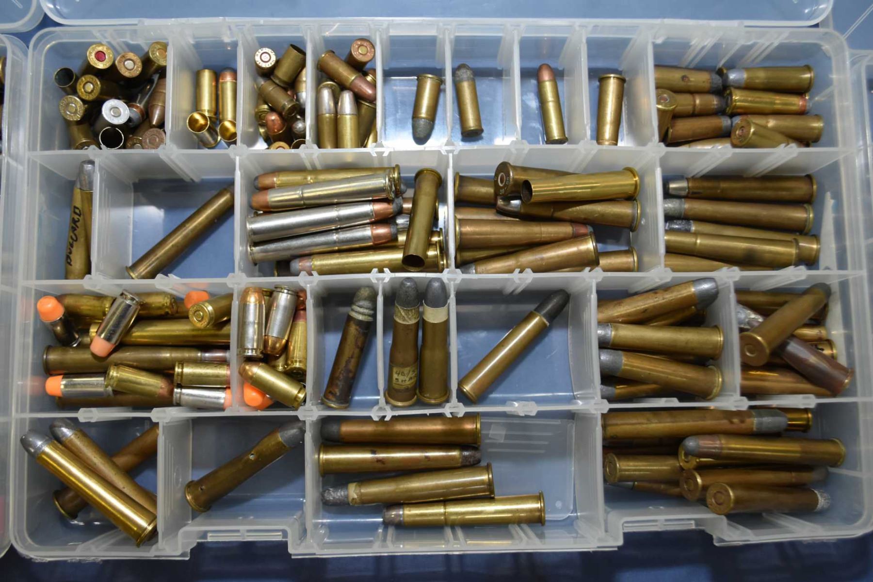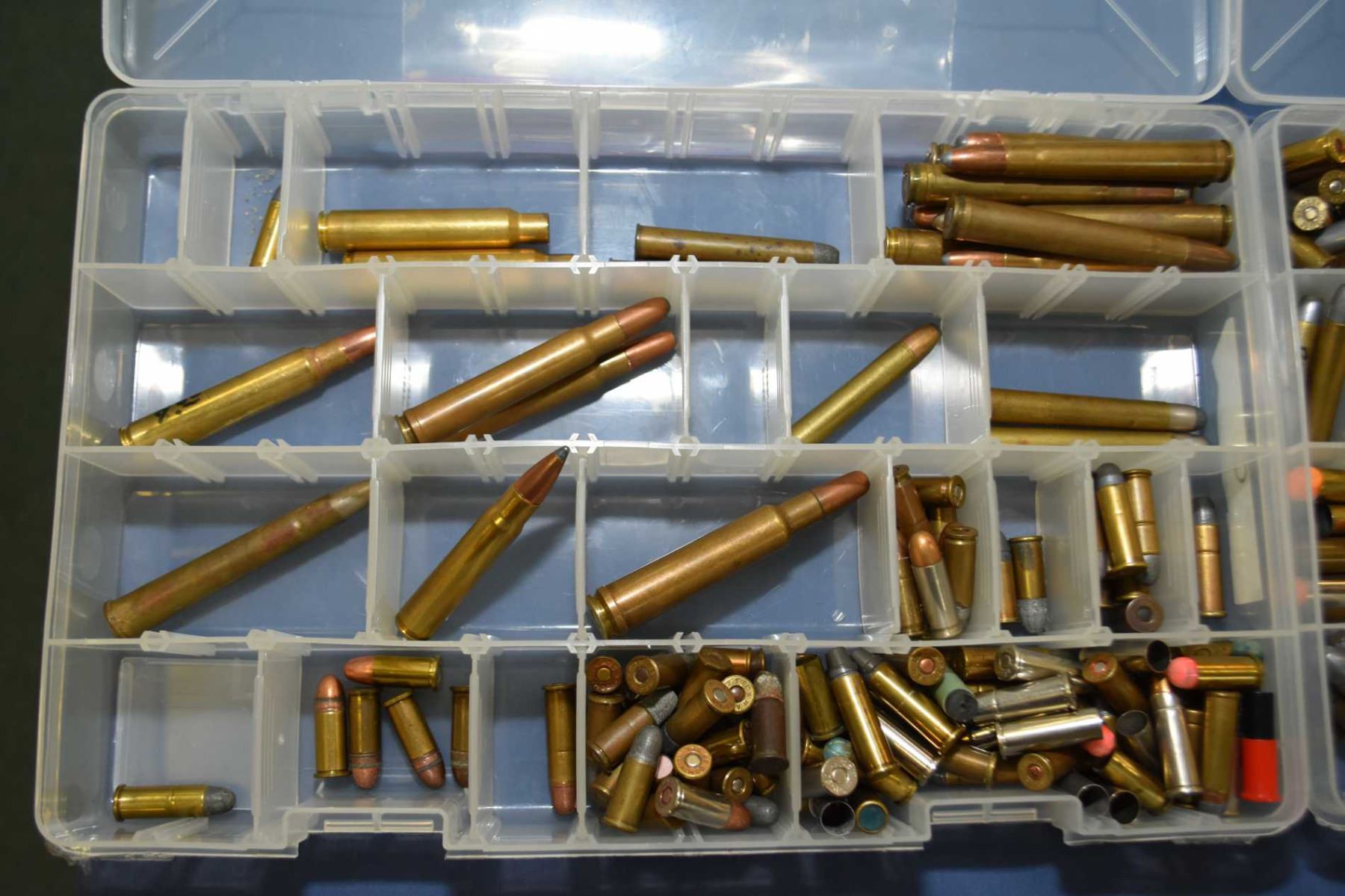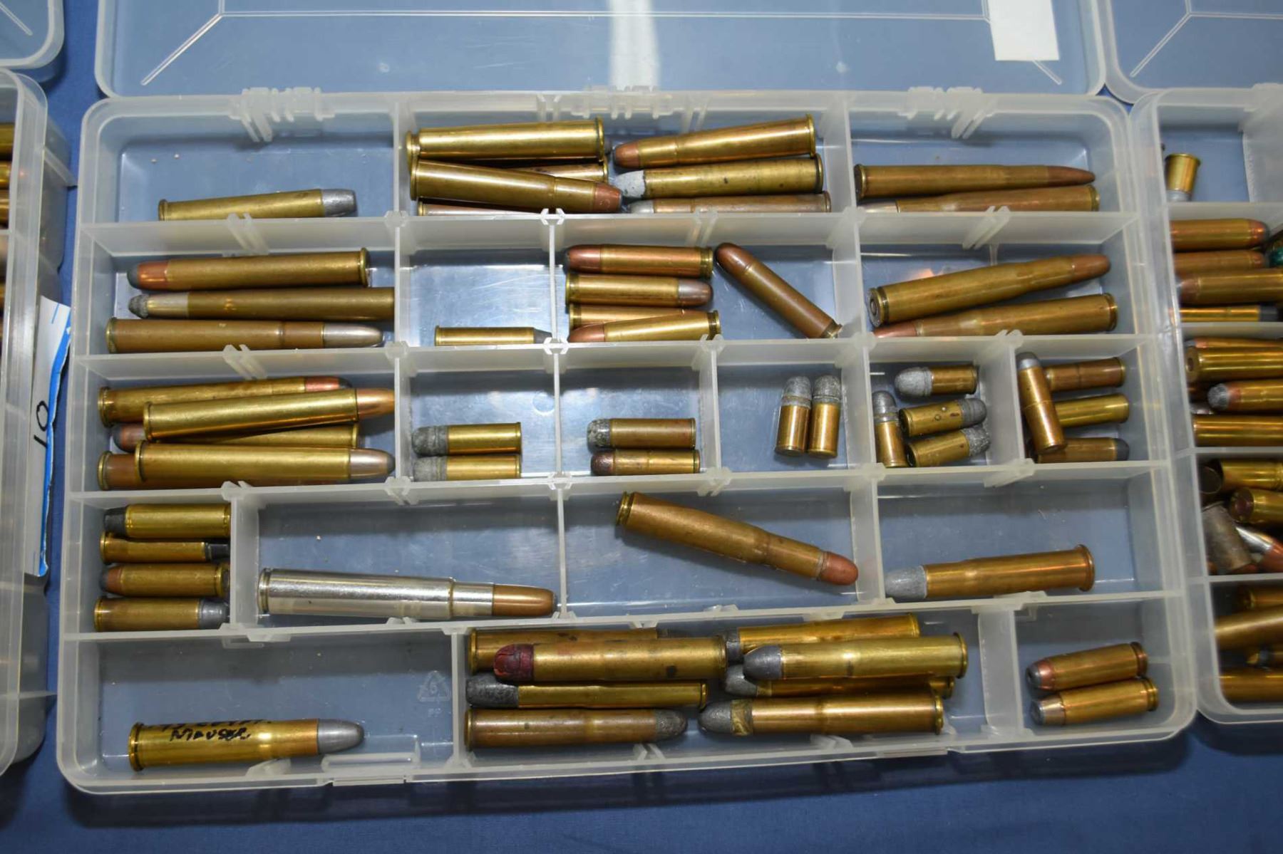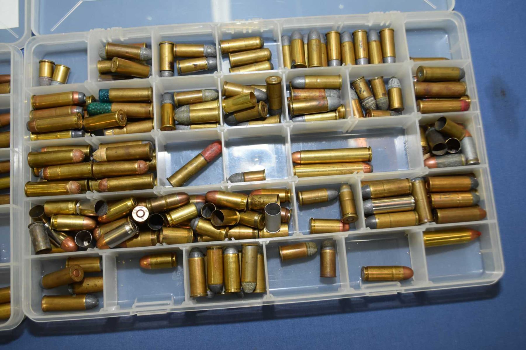 Lot of Four Plastic Trays of Collector's Ammo & Brass : w/ index cards of listing