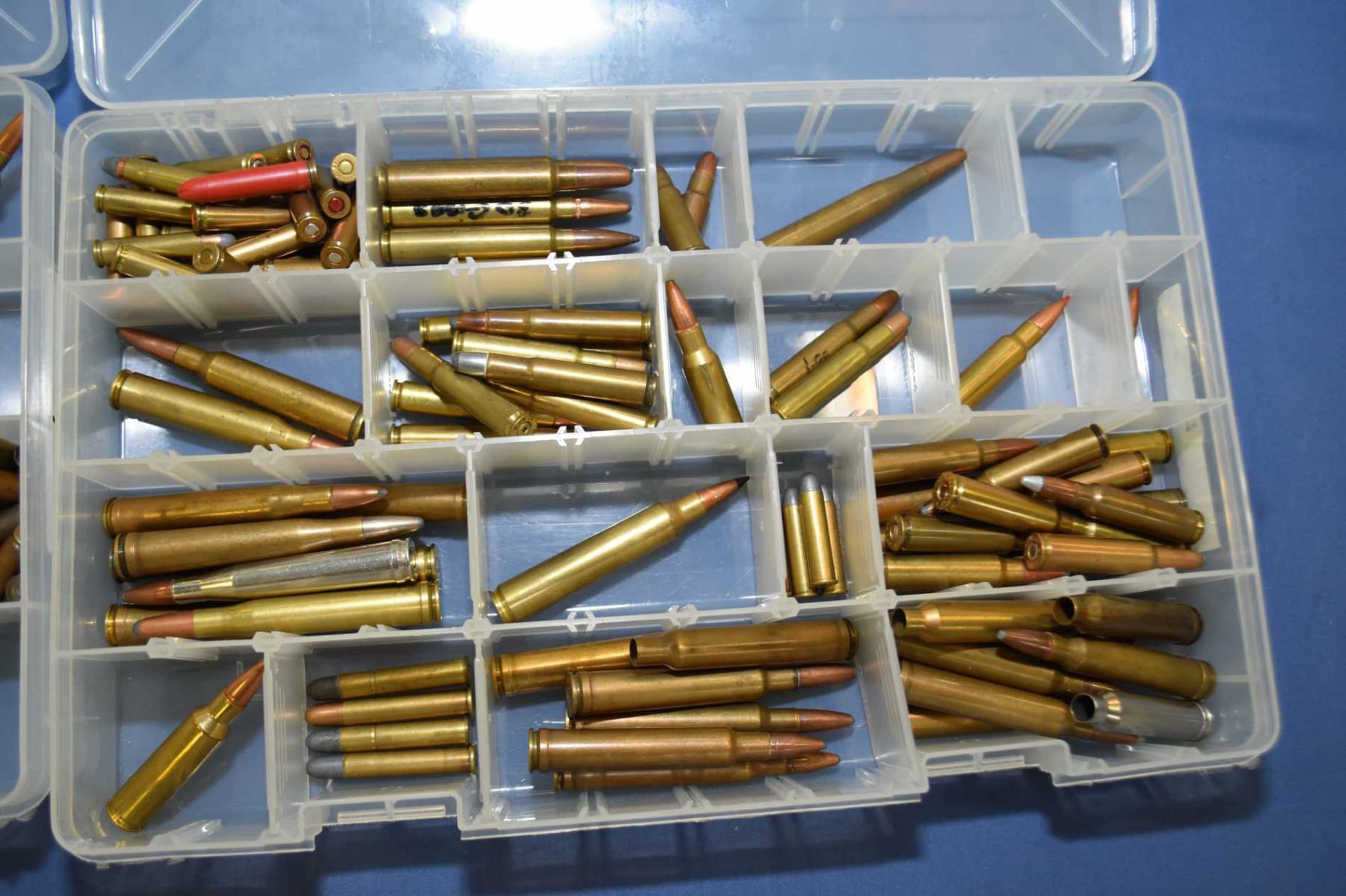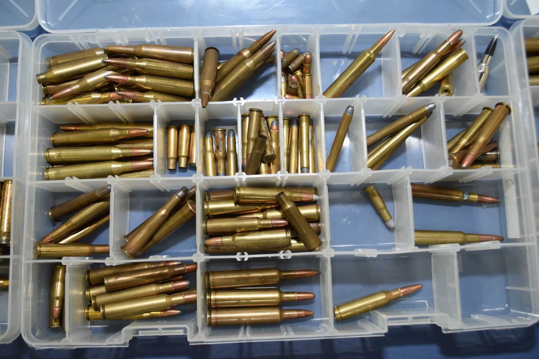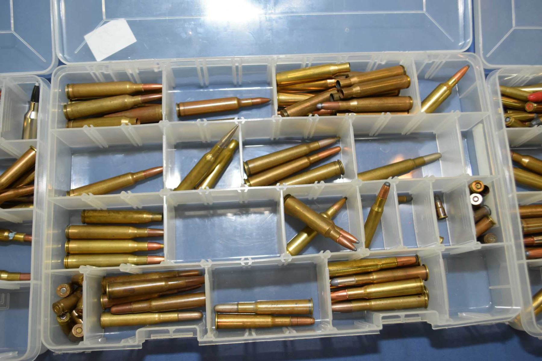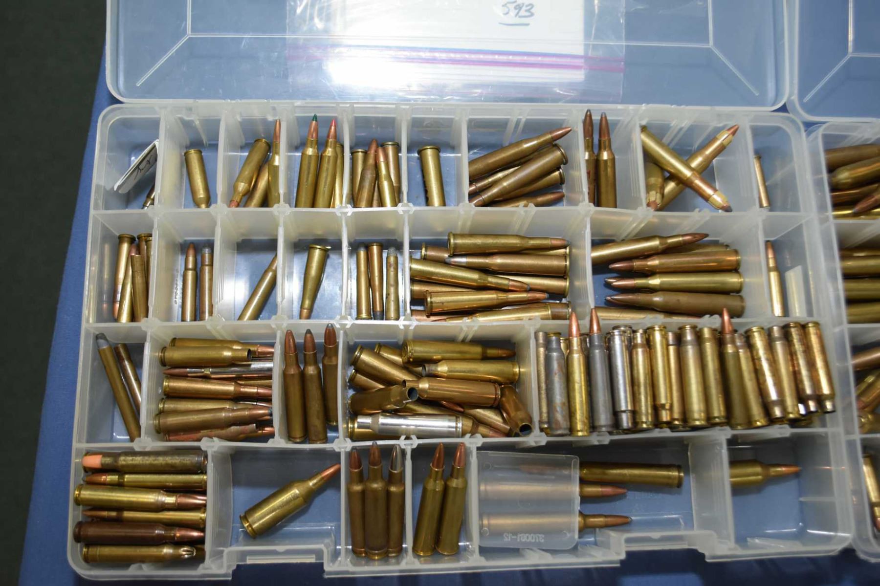 Lot of Four Plastic Trays : with Collector's Ammo & Brass with index cards of listing