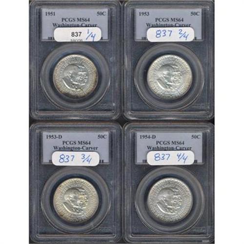 <b>Lot of Four Washington-Carver Commemoratives.</b> Includes: 1951 PCGS MS64, 1953 PCGS MS64, 1953-D PCGS MS64, 1954-D PCGS MS64. Some scarcer dates in this group. Lot of 4 coins. <i>