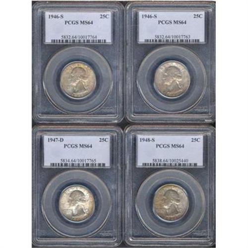 <b>Lot of Four Washington Quarter Dollars.</b> Includes: 1946-S PCGS MS64, 1946-S PCGS MS64, 1947-D PCGS MS64, and 1948-S PCGS MS64. Lot of 4 coins. <i>