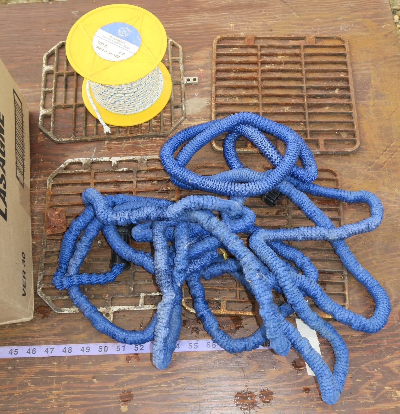 Lot of Garden Hose/Habachi Grates/Small Engine Starter Rope