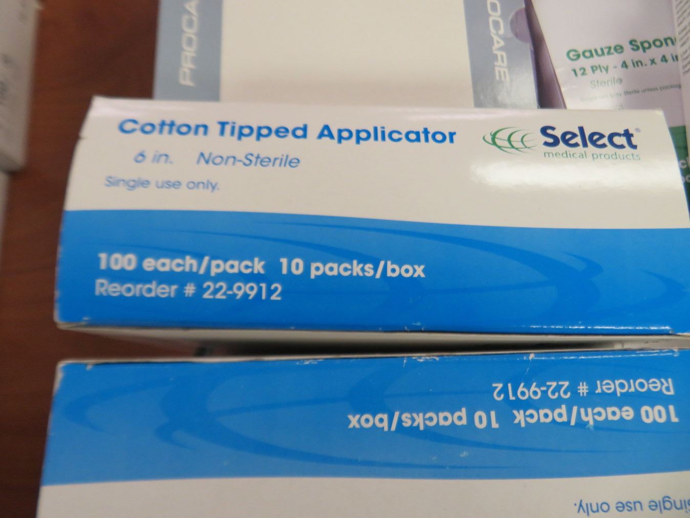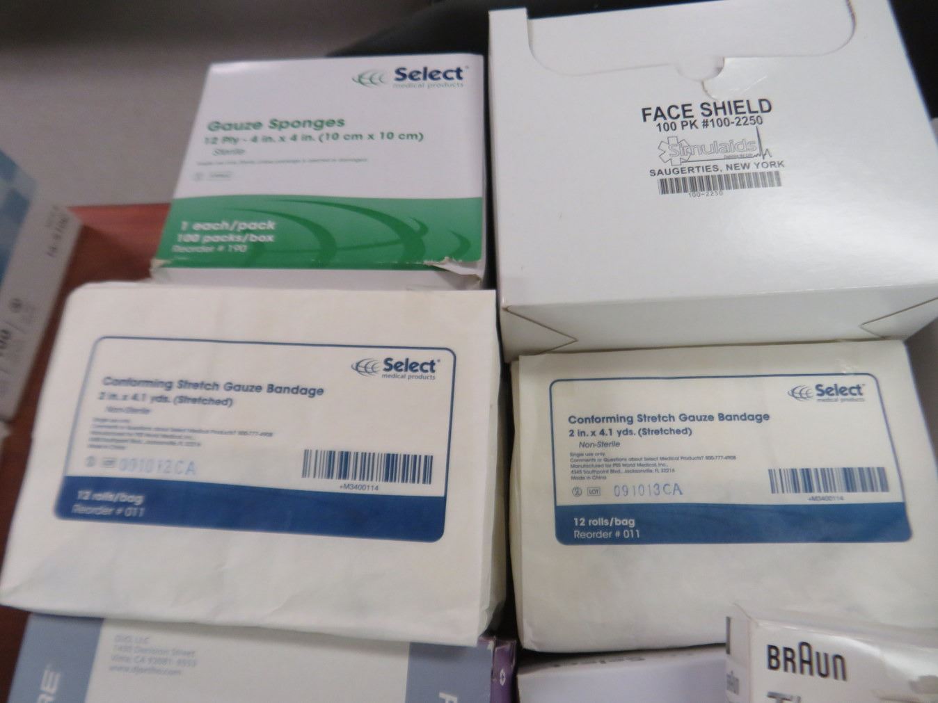 Lot of Gauze, Bandages, Face Shields, Applicators & Caps