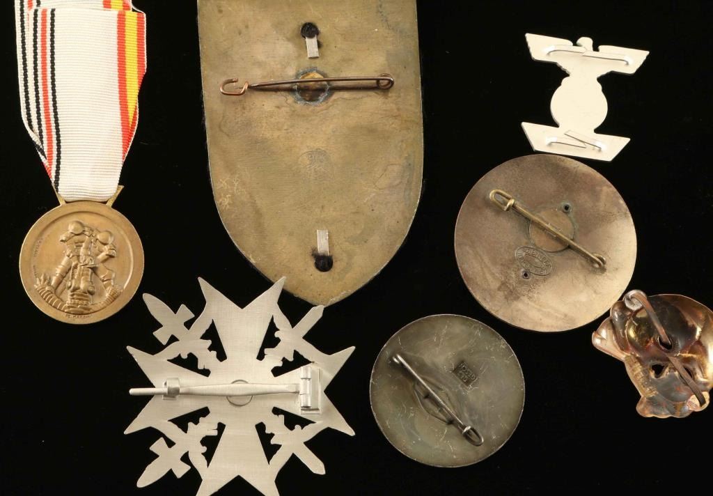 Including; Luftwaffe Silver Spanish Cross with Swords, 1934 Wintertag Tinnie Badge, Army Afrika Korps Service Decoration, Allegemeine SS Kepi/Visor Cap Skull, Deutsche Zeppelin Reederei Air Ship Badge, 1936 Berlin Summer Olympics International Press Badge, and a 2nd Class Clasp to the Iron Cross. Offered "as is", we don't guarantee the authenticity of these items, please do your research. All sales are final.