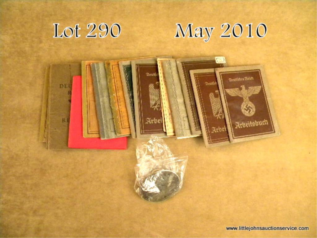 Lot of German military and political identification books. Many with original owners photos. Also four original WWII German dog tags. Est: $400 - $600
