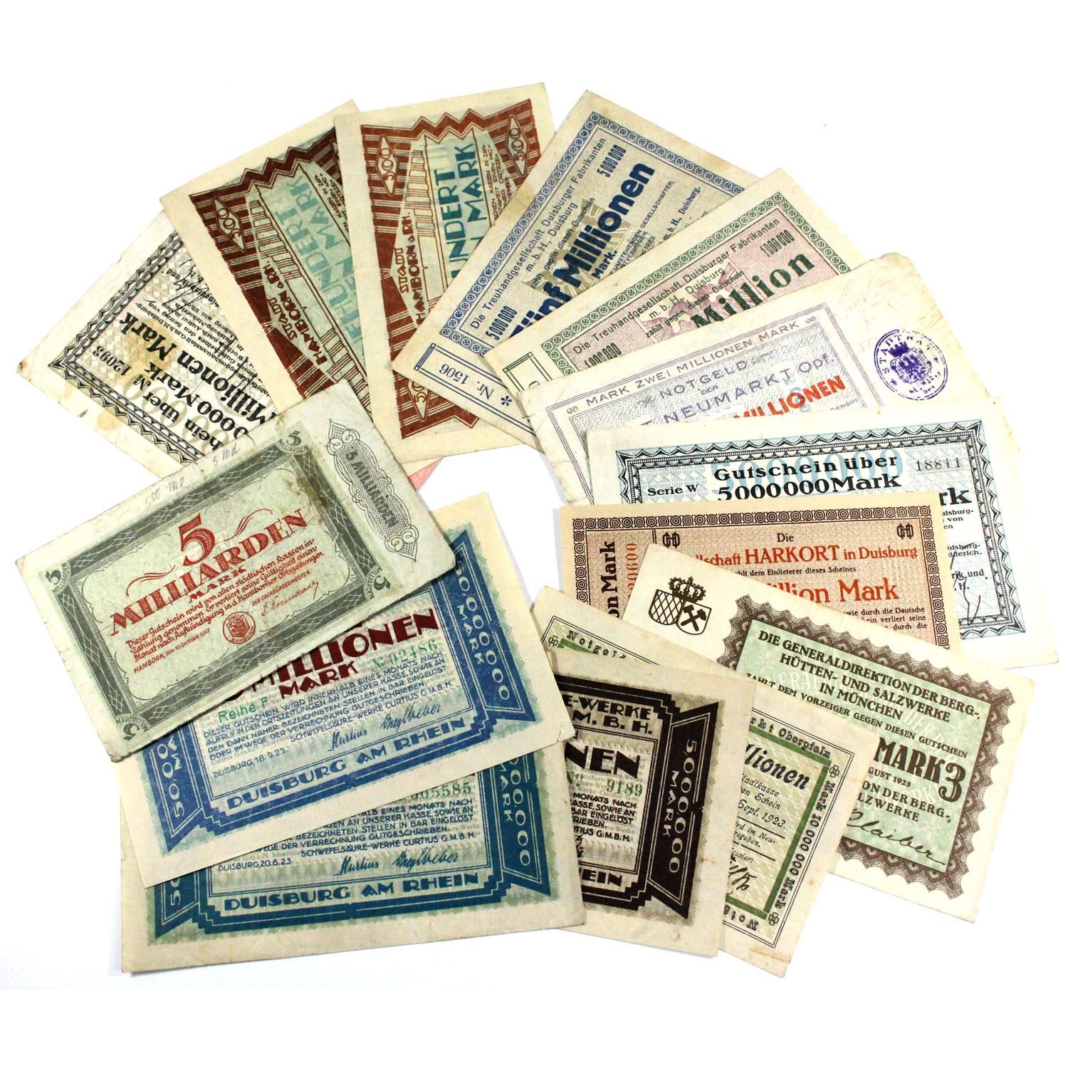 Lot of Germany Not geld Banknotes. You will receive all different notes except for 2x duplicate designs. 14pcs