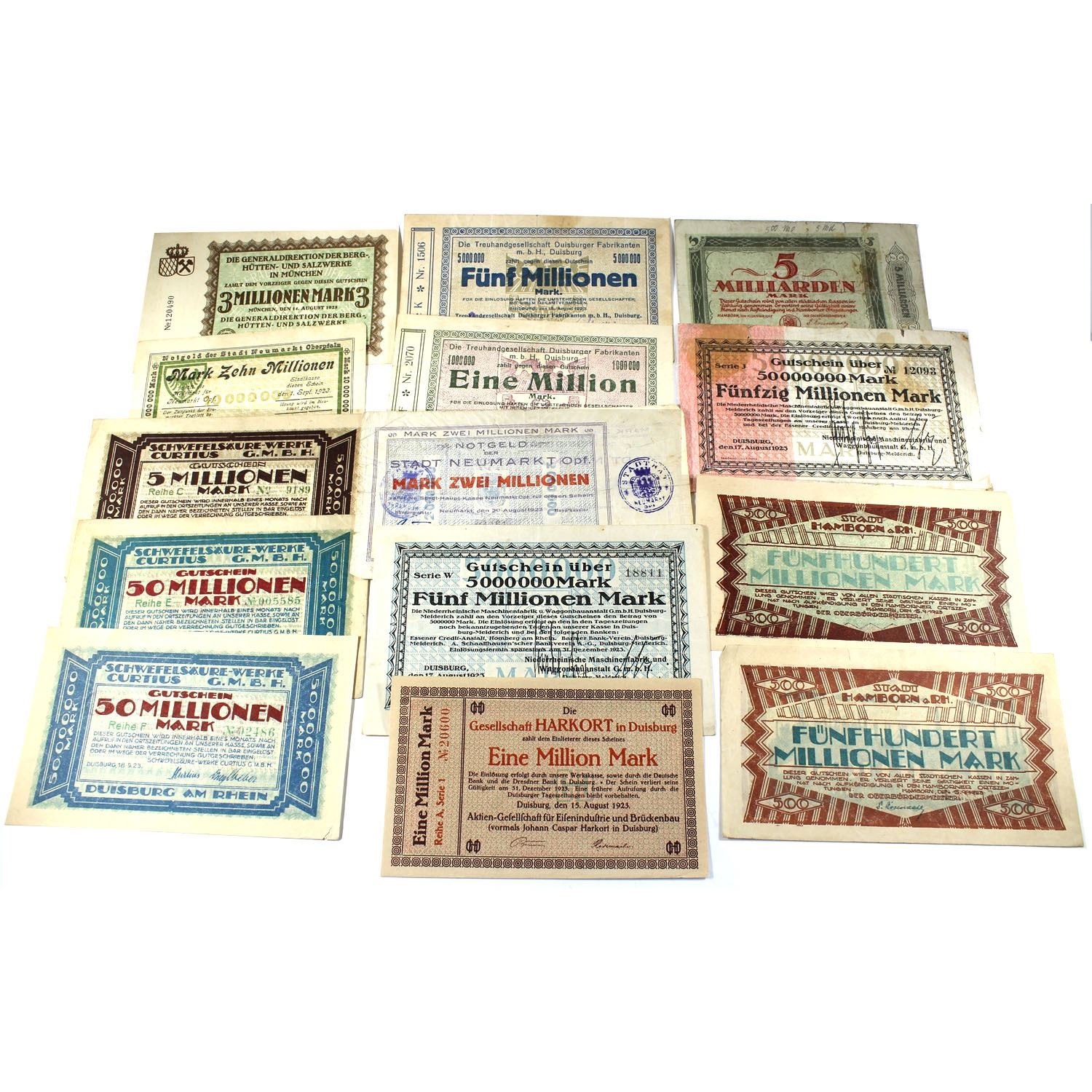 Lot of Germany Notgeld Banknotes. You will receive all different notes except for 2x duplicate designs. 14pcs