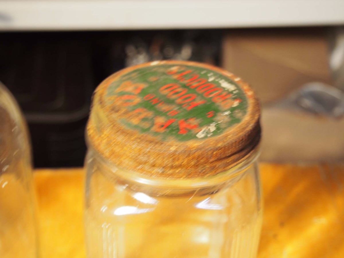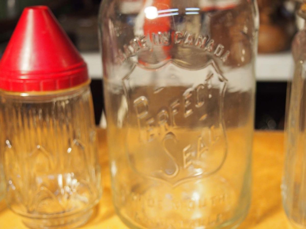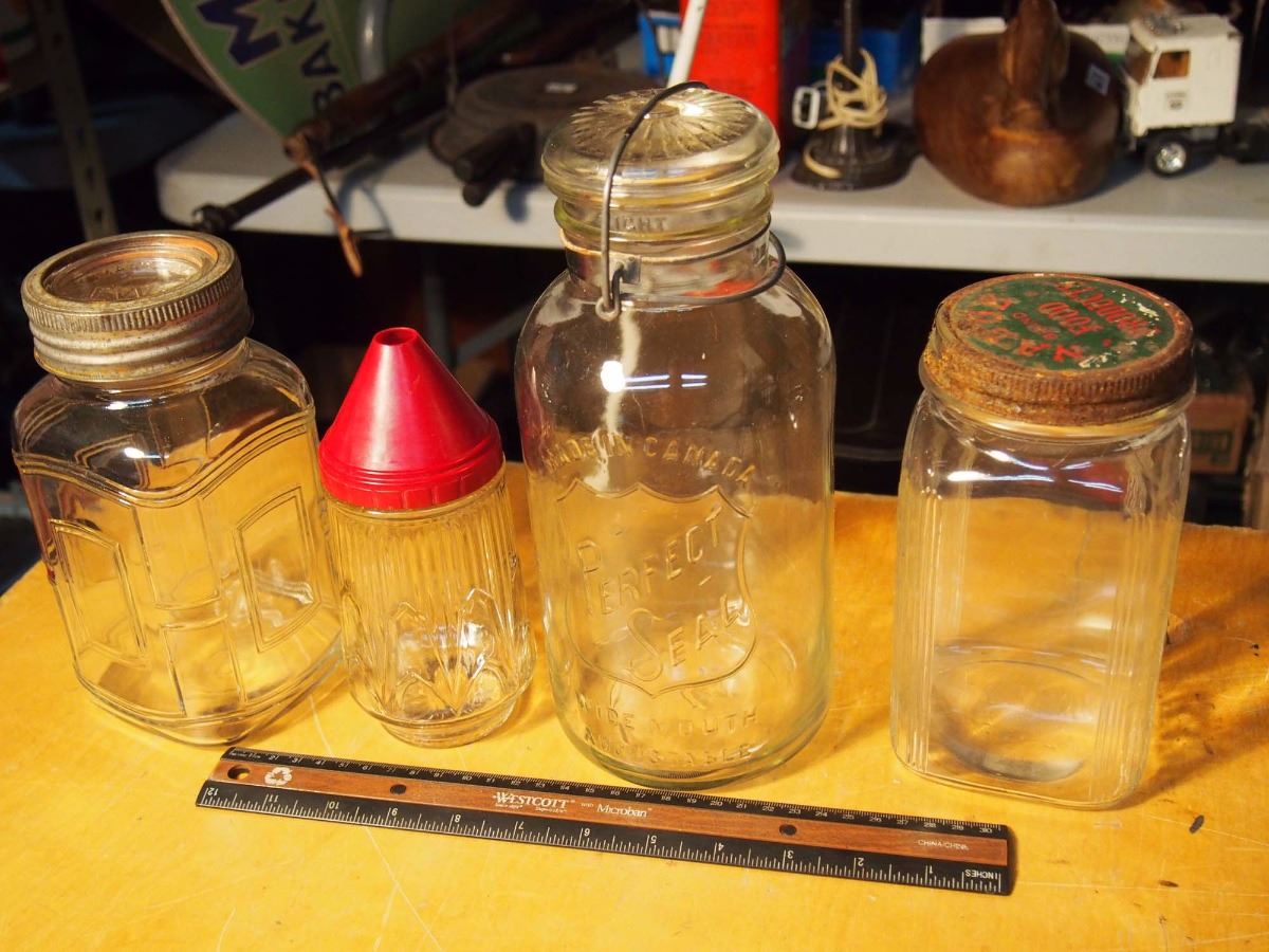 Lot of Glass Jars (4)(Perfect Seal, Nabob, Jewel, and Tilt-a-Spoon