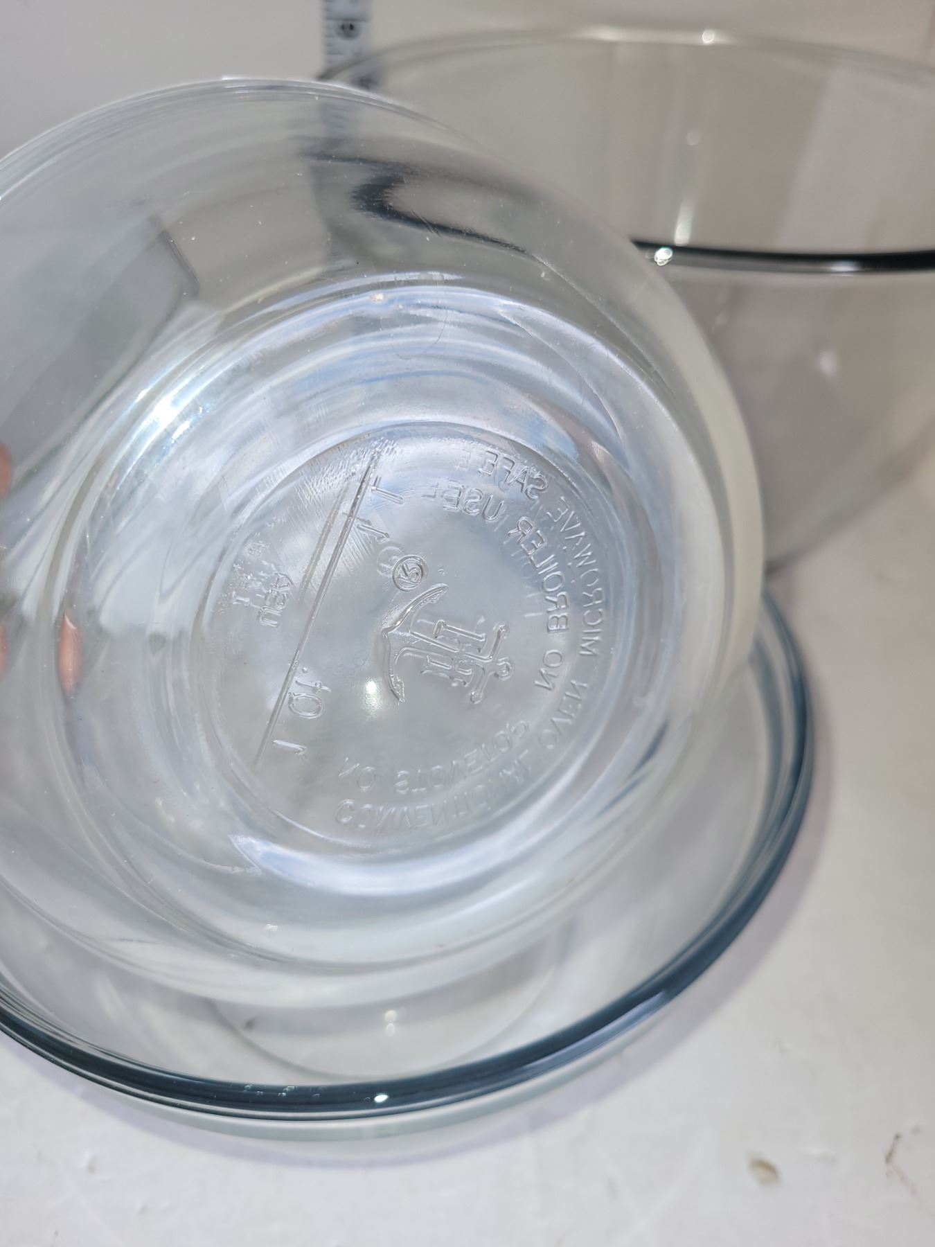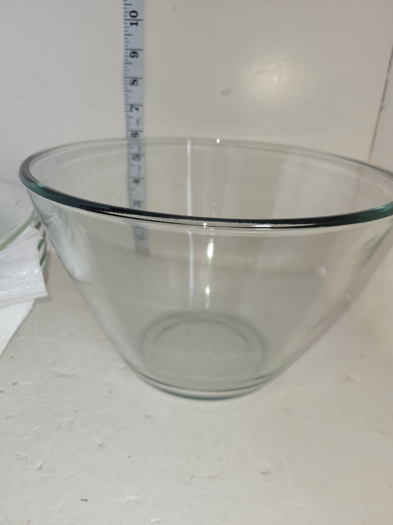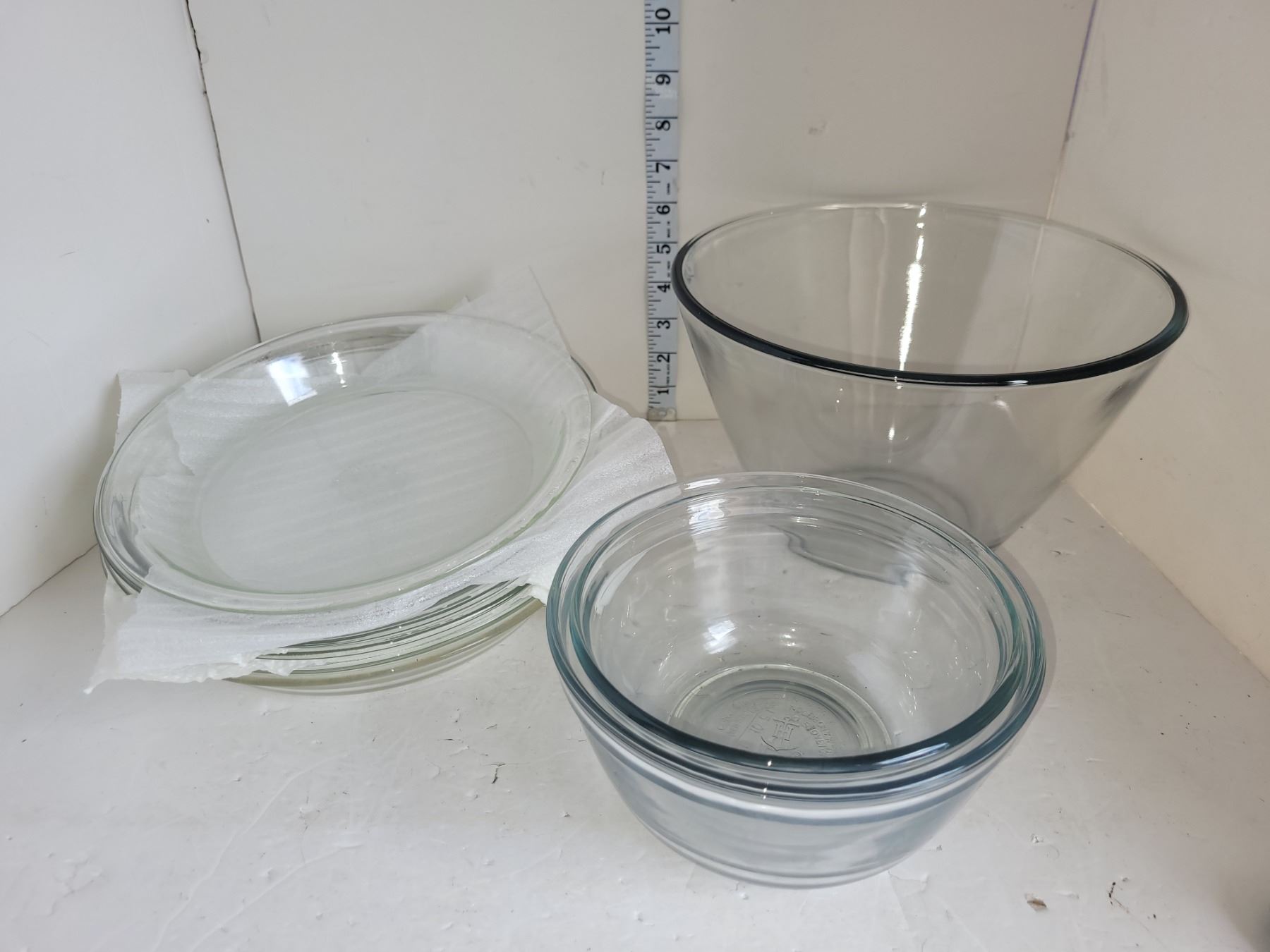 Lot of Glass Pie Plates, 3 Glass Mixing Bowls - Anchor Hocking, Pyrex