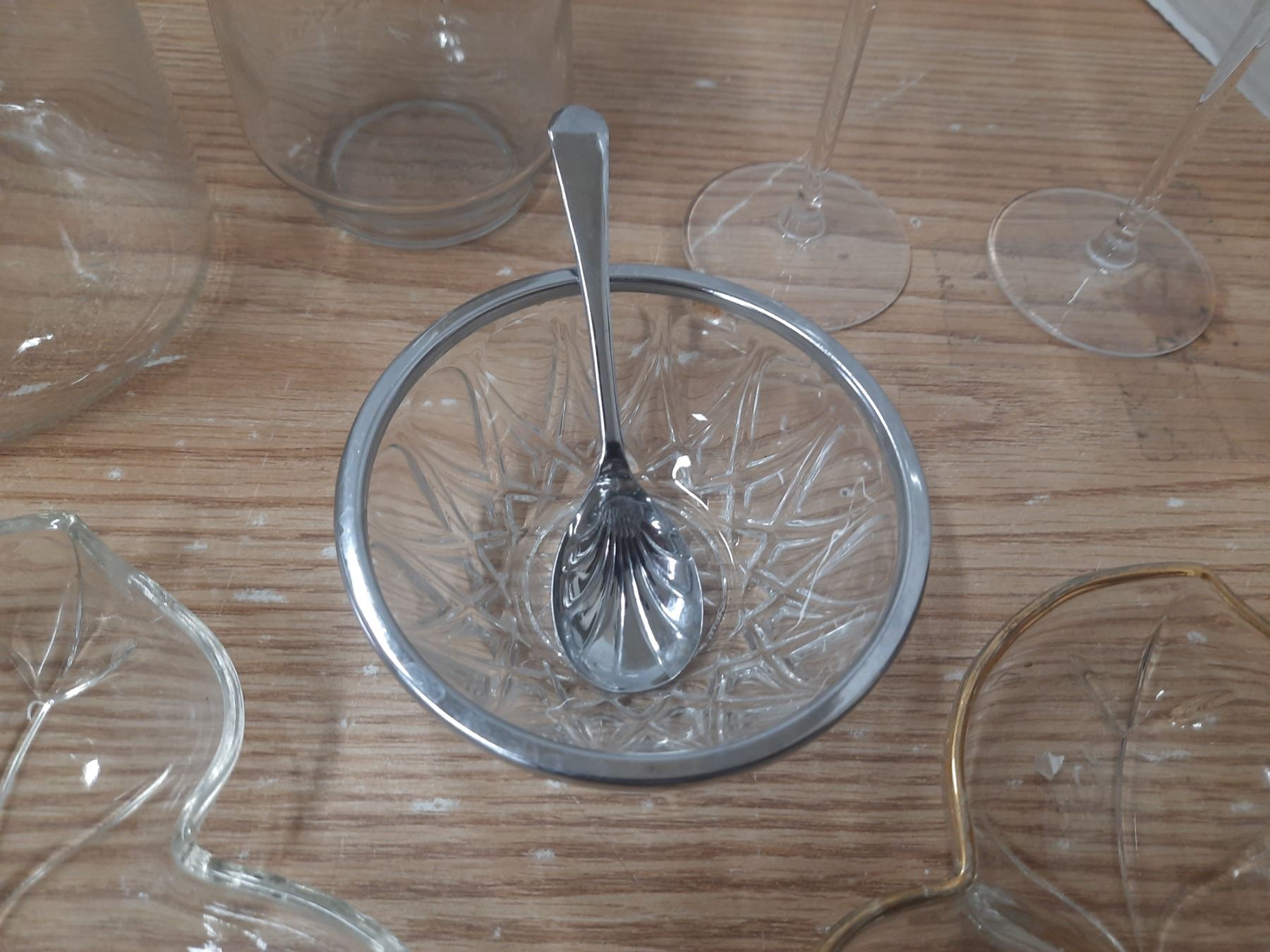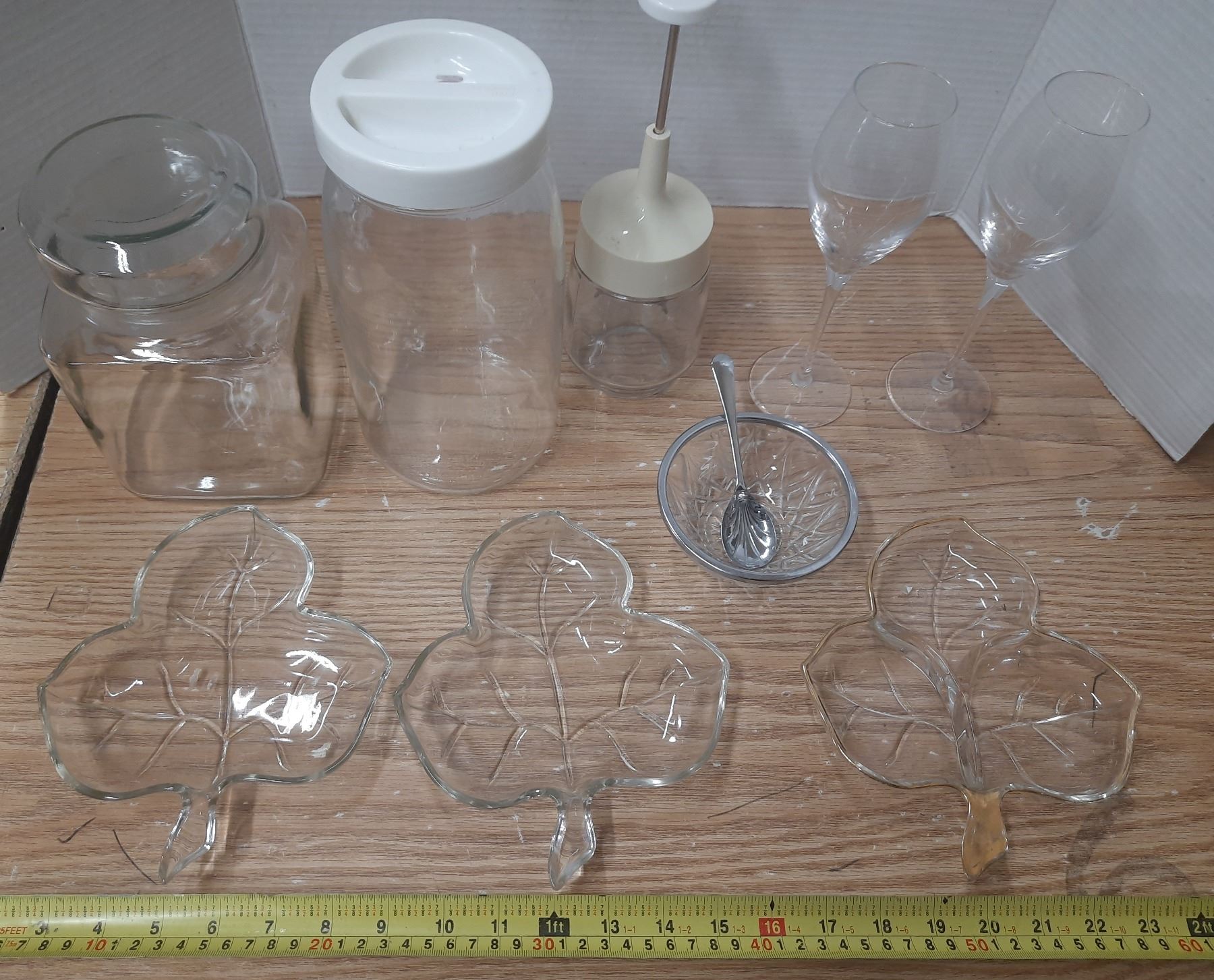 Lot of Glassware Items. (It includes, 3 Leaf Plates, 2 Jars, Small Bowl and Spoon, etc.)