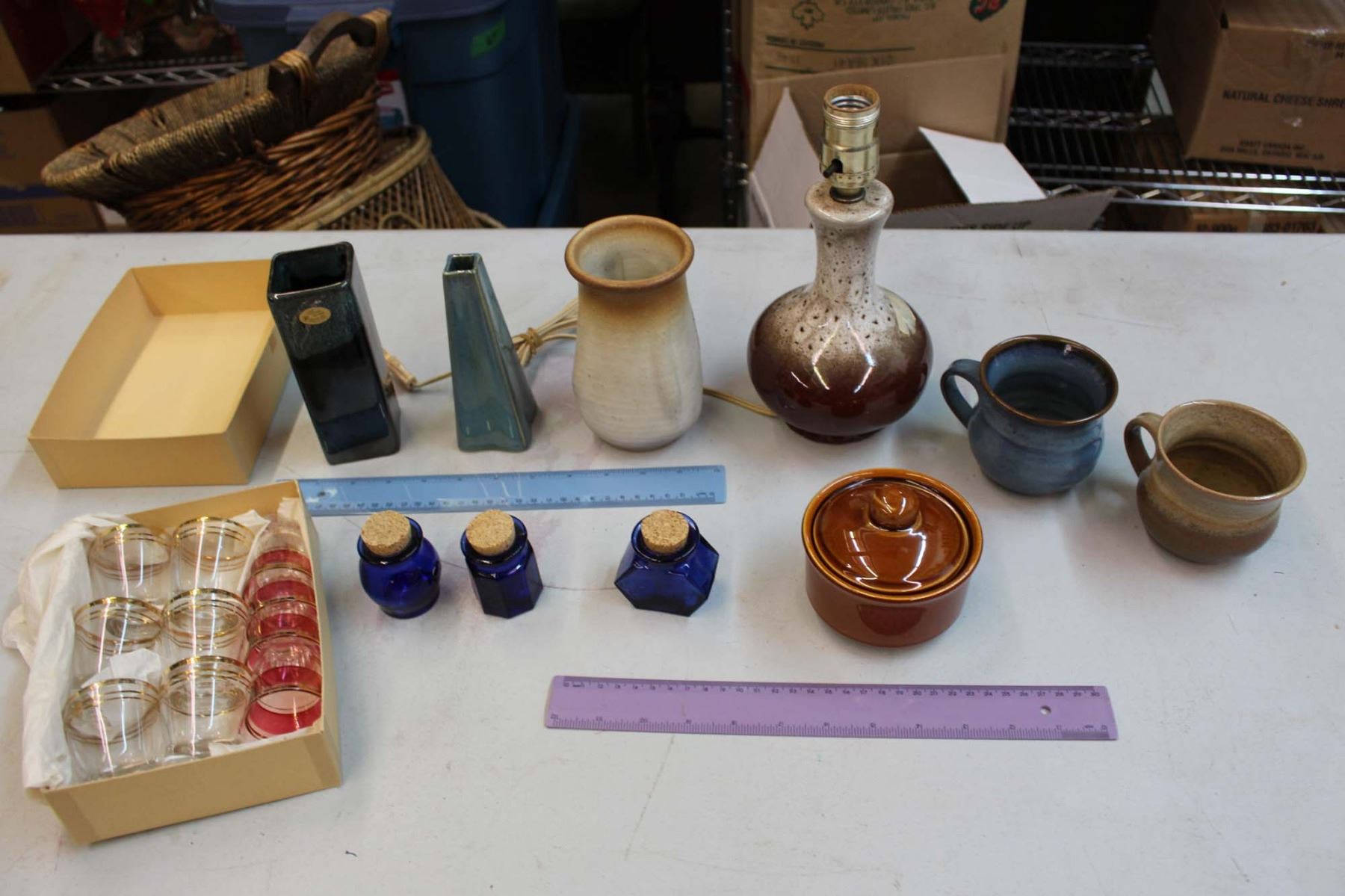 Lot of Glassware: Mugs, Vases, Shot Glasses, Etc