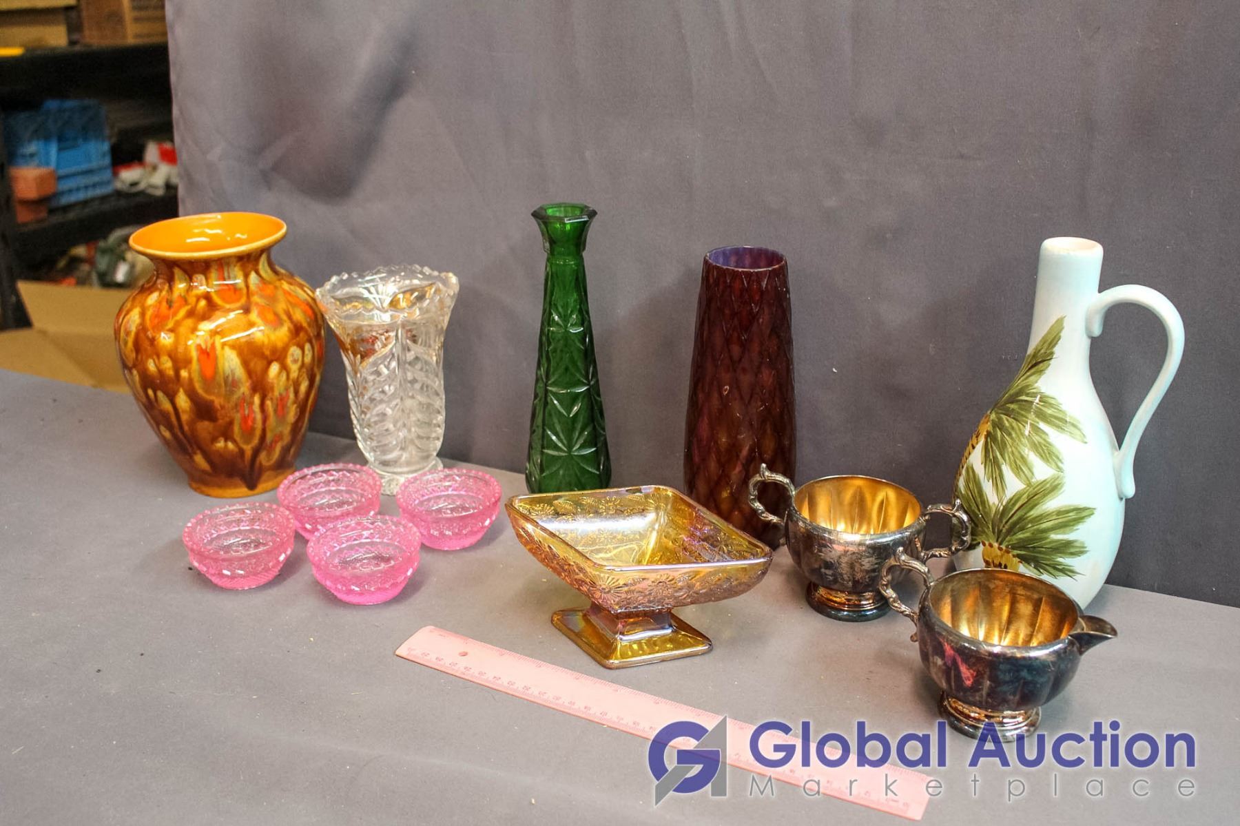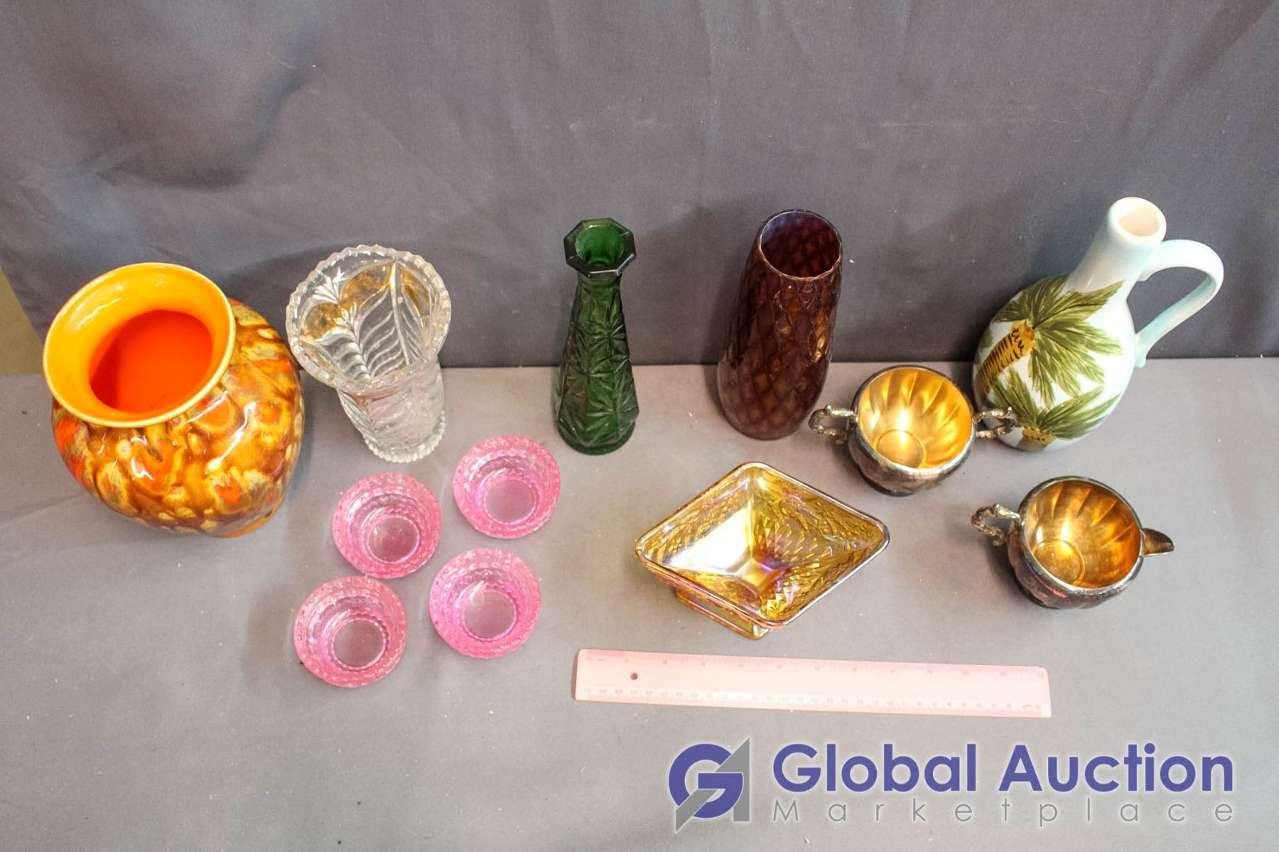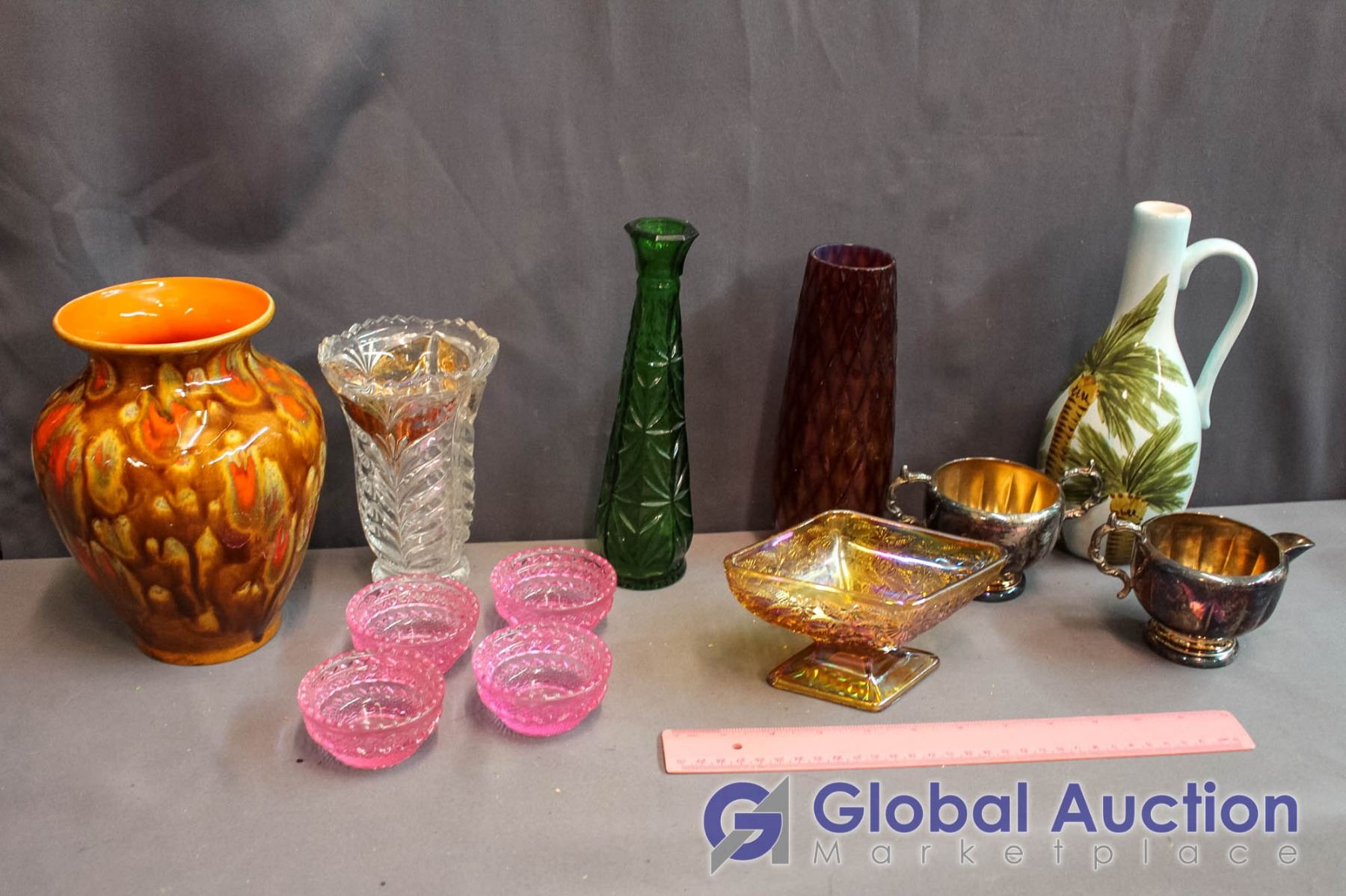 Lot of Glassware, Vases, Carnival Glass Bowl, Decor