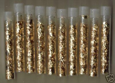 A lot of 10 vials of real gold flakes.