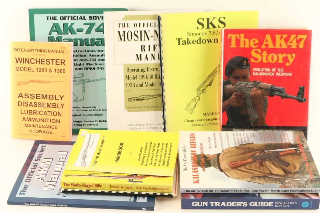 Including; Do Everything Manual Winchester Model 1200 &1300, 7.62mmR Mosin Nagant Handbook, The Mosin Nagant Rifle by Terence W. Lapin, The AK47 Story, The AK-74 Manual, The Official Soviet AKM Manual, The Official Soviet Mosin Nagant Rifle Manual, Ak-47 and AK-74 Kalashnikov Rifles, and more...