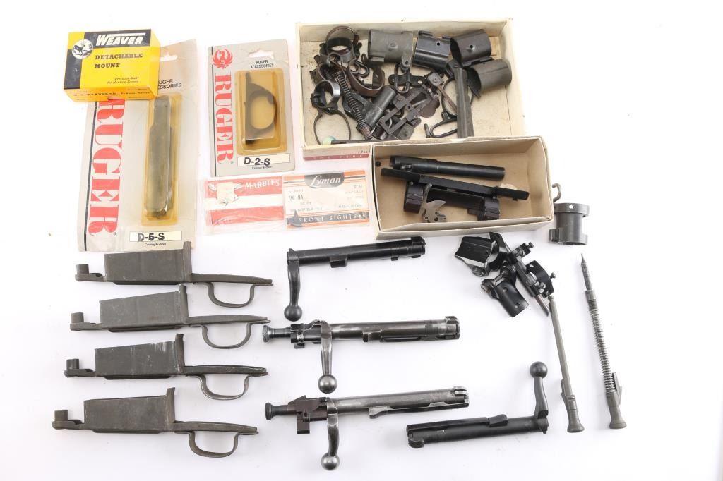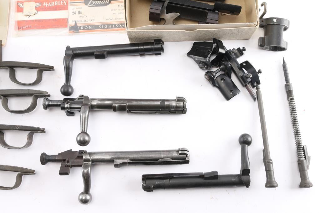 Includes: M1903 trigger guards, bolt assemblies, springs, pins, bands, sling swivels, and more.