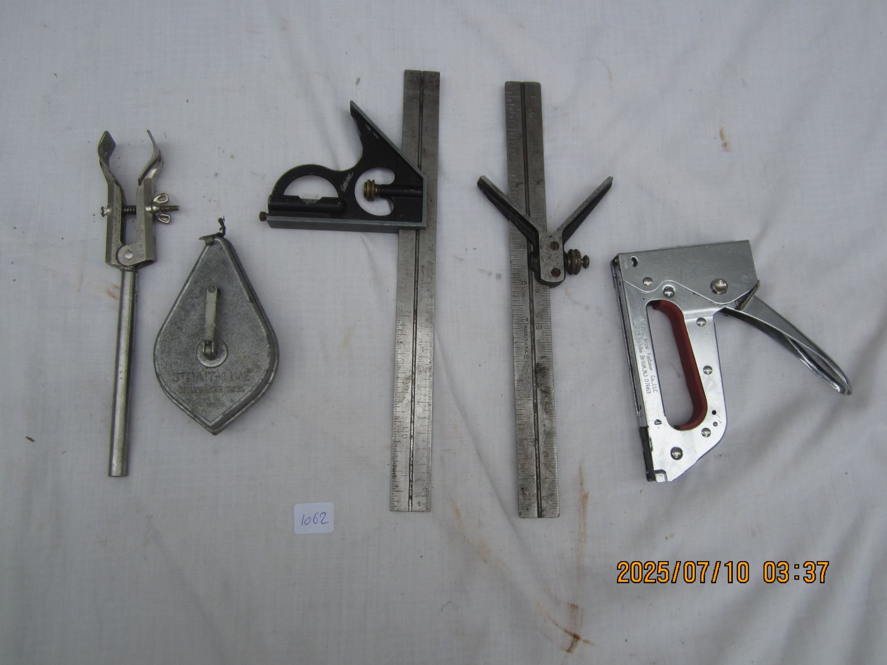 Lot of Hand Tools Chalk Line, Stapler, Square Ect.