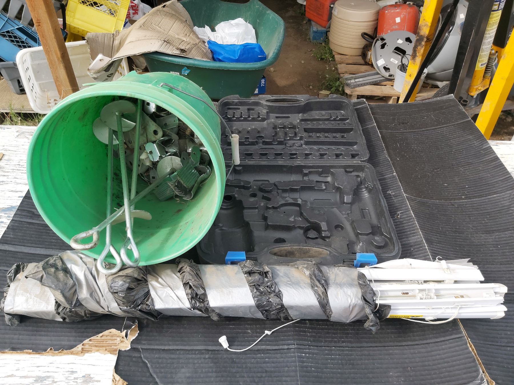 Lot of Hardware (Anchor bolts, washers, empty drill set, blinds)