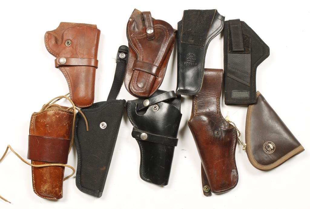 1 Uncle Mike's nylon, 1 Hunter leather, 2 Bucheimer leather, 1 North American Arms lockable gun rug and more.