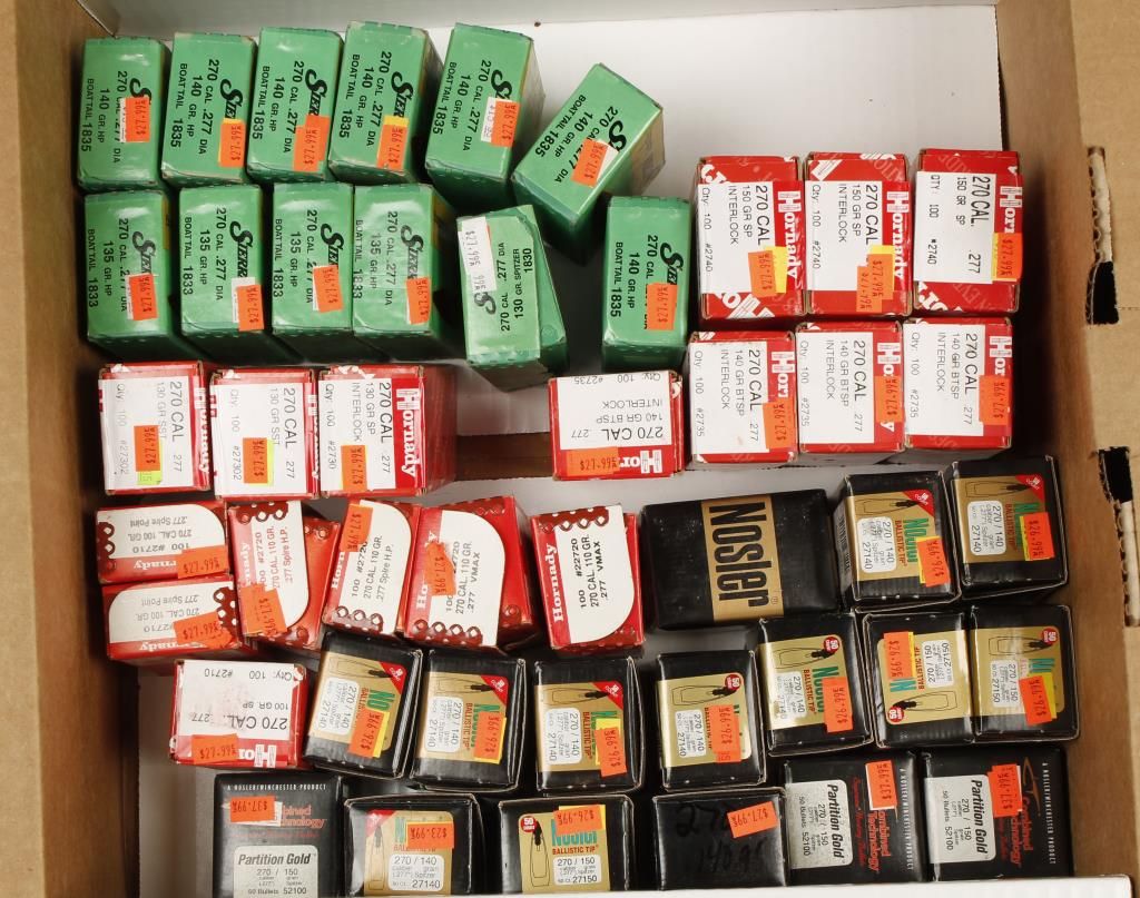 17 boxes Hornady 270 Cal., 12 boxes Sierra 270 Cal., and16 boxes Nosler 270 Cal. bullets.