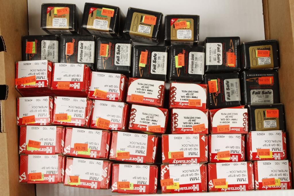 23 boxes Hornady 7MM, and 14 boxes Nosler 7MM bullets.