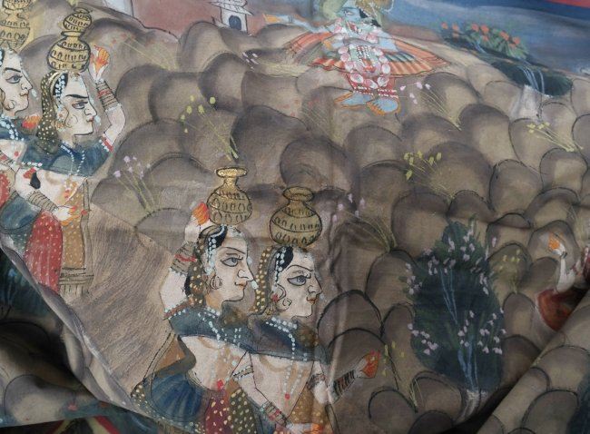 Assortment of linens, textiles, cottons and silks. Various motifs and colors. Size varies [11" H x 12" W to 34" H x 50" W]. In good condition. Sold as is.