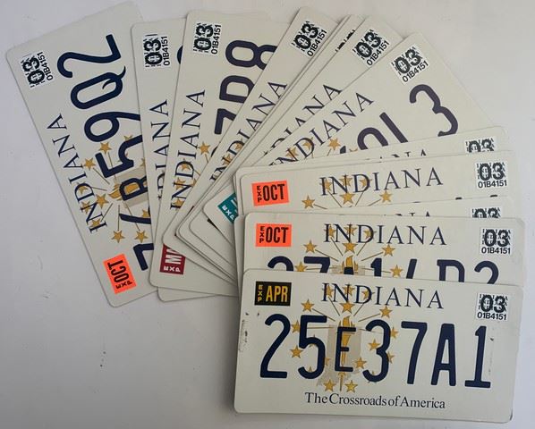 Lot of Indiana state cardboard license plates (15). Used in various movies and TV shows. From the Debbie Reynolds/Todd Fisher studio archives.