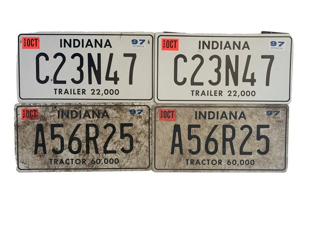 Indiana state license plates. 1 pair is distressed, 1 pair is clean. Set of 2 pairs (4). Used in various movies and TV shows. From the Debbie Reynolds/Todd Fisher studio archives.