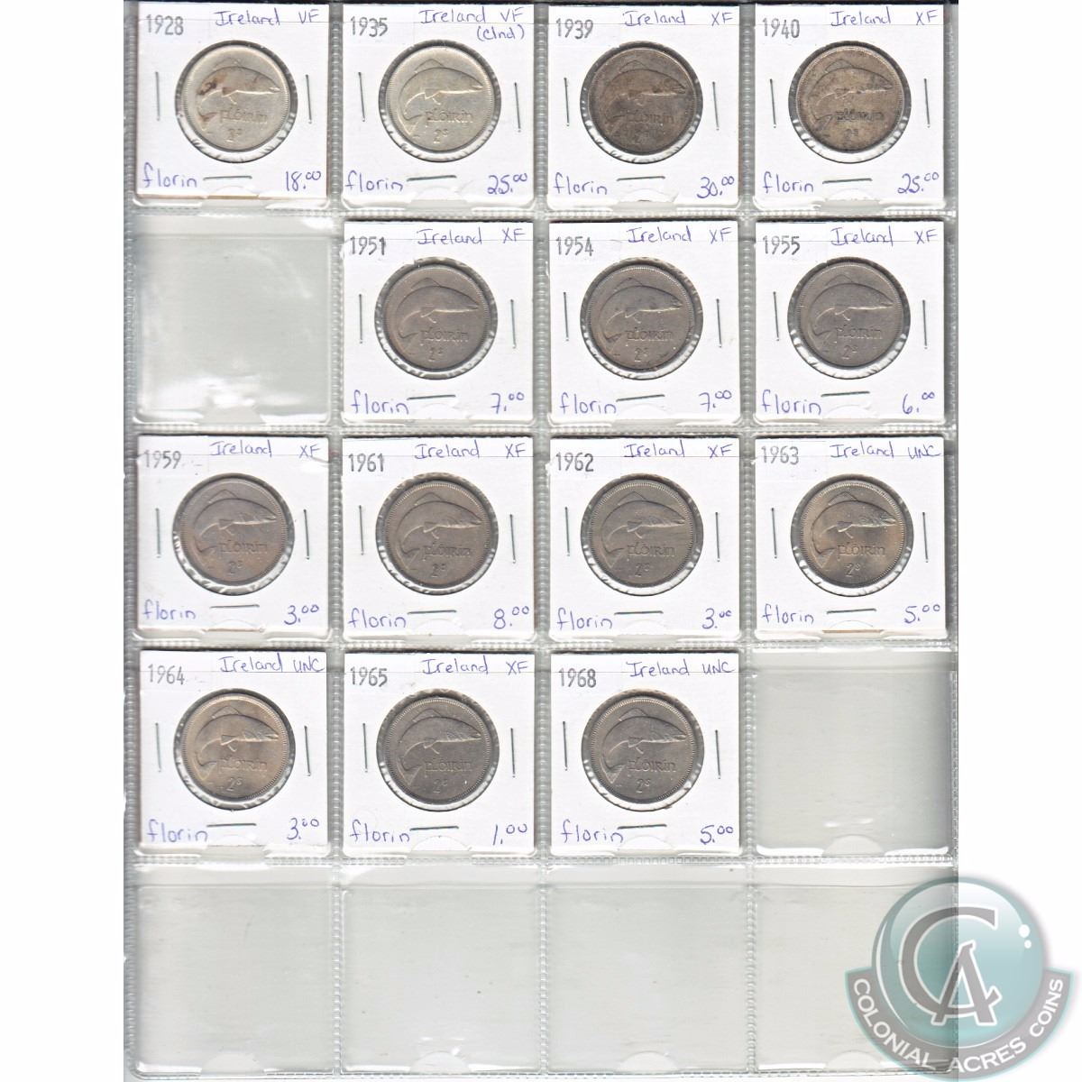 Lot of Ireland Florins 1928 to 1968. 14pcs