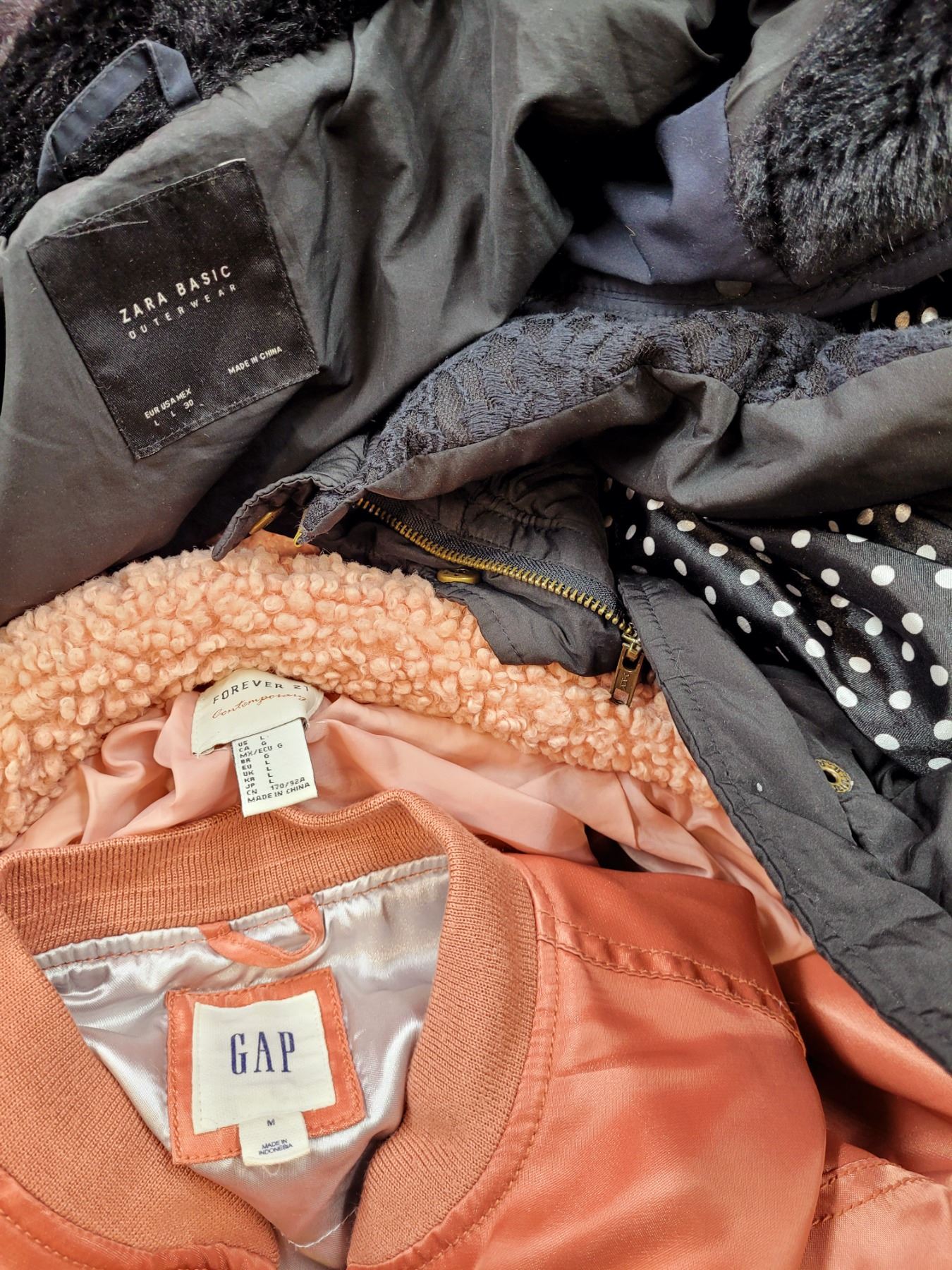 Gap is size M, Zara is size L, & Forever 21 is size L