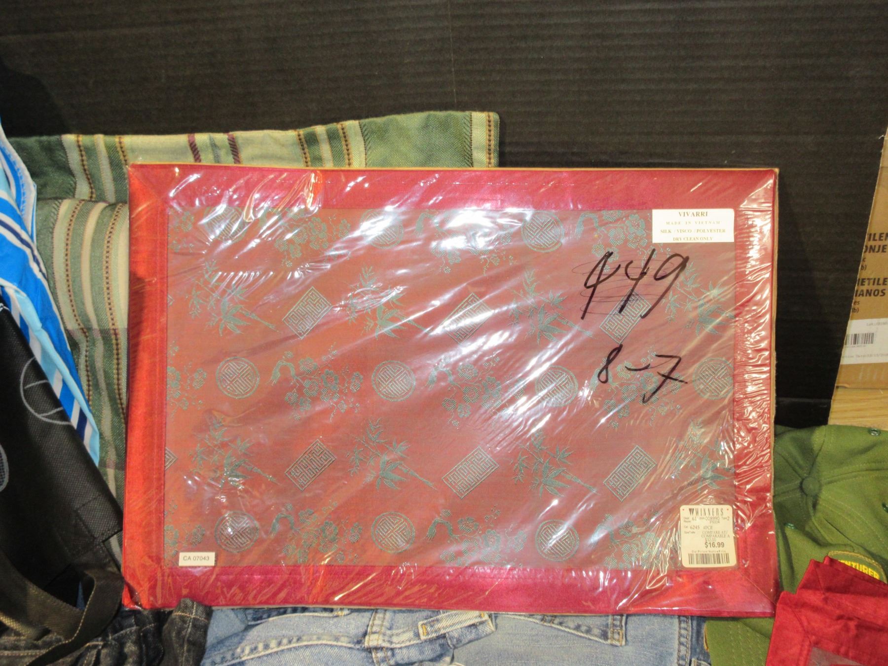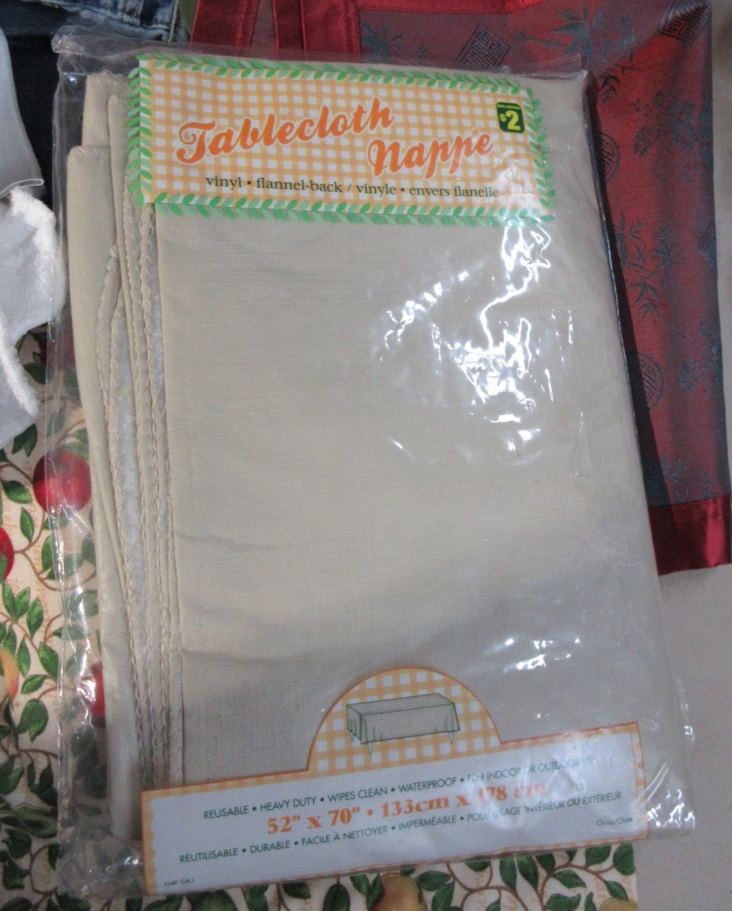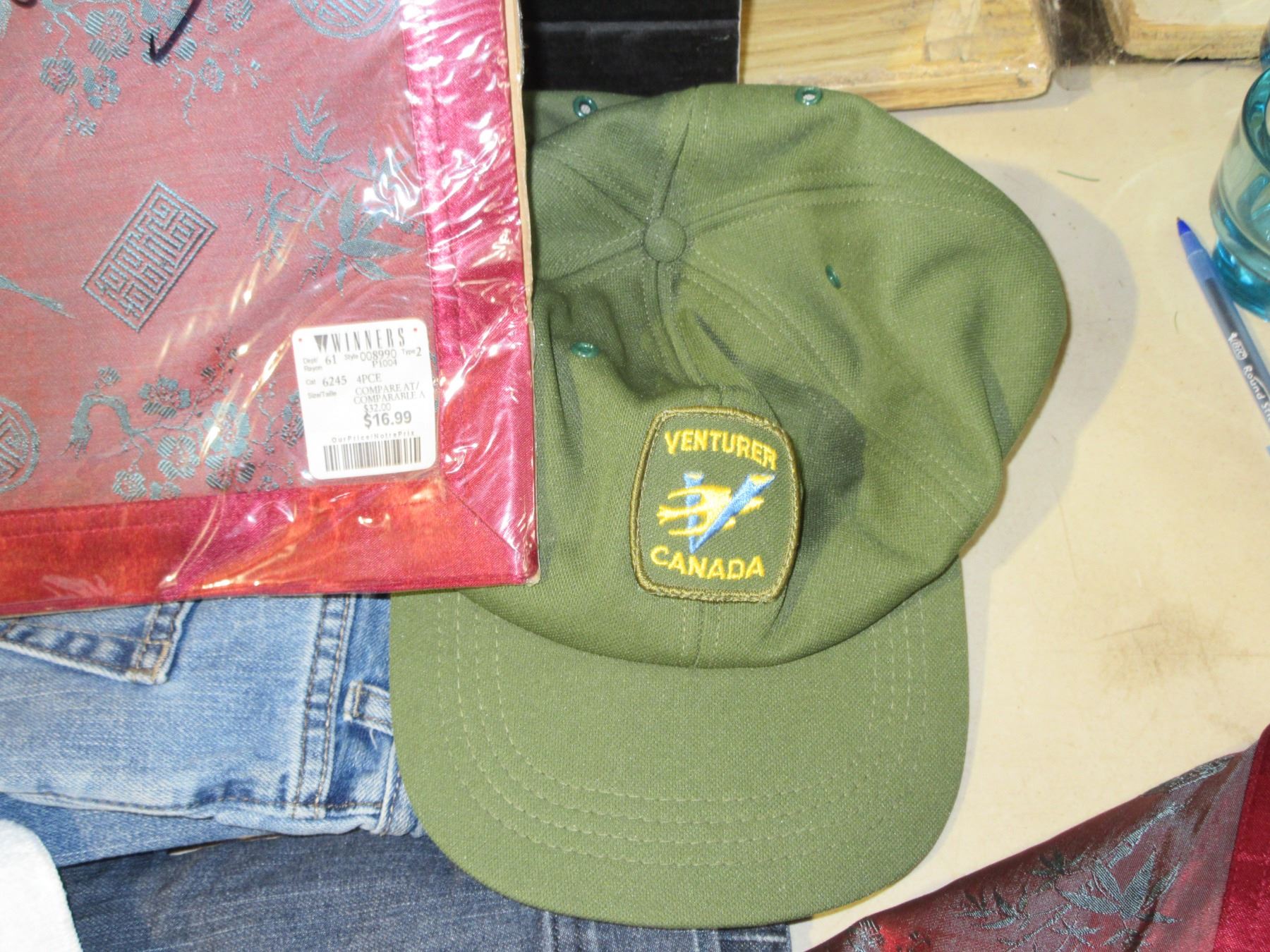Lot of Jeans (Various Sizes of Kids Included 6, 7, 8, 8 etc, Some Adult Also), 7 Cotton White Handkercheif (New), (2) Tablecloth (New), (4) Caps (Two from Scouts Canada), Etc.