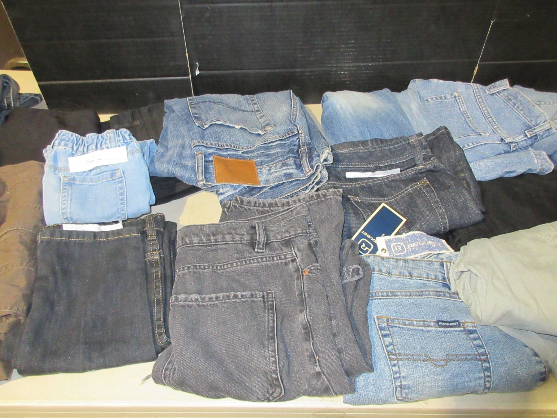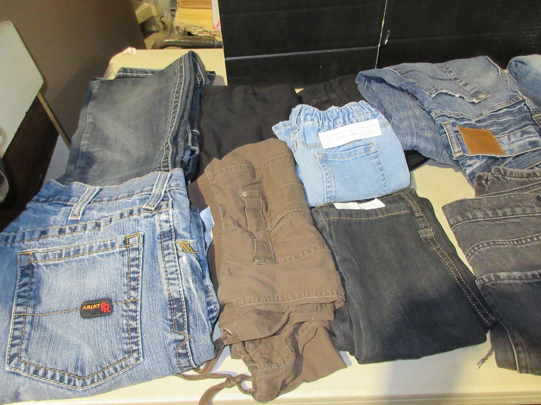 Lot of Jeans (Various Sizes of Kids Included 6, 7, 8, 8 etc, Some Adult Also), 7 Cotton White Handke