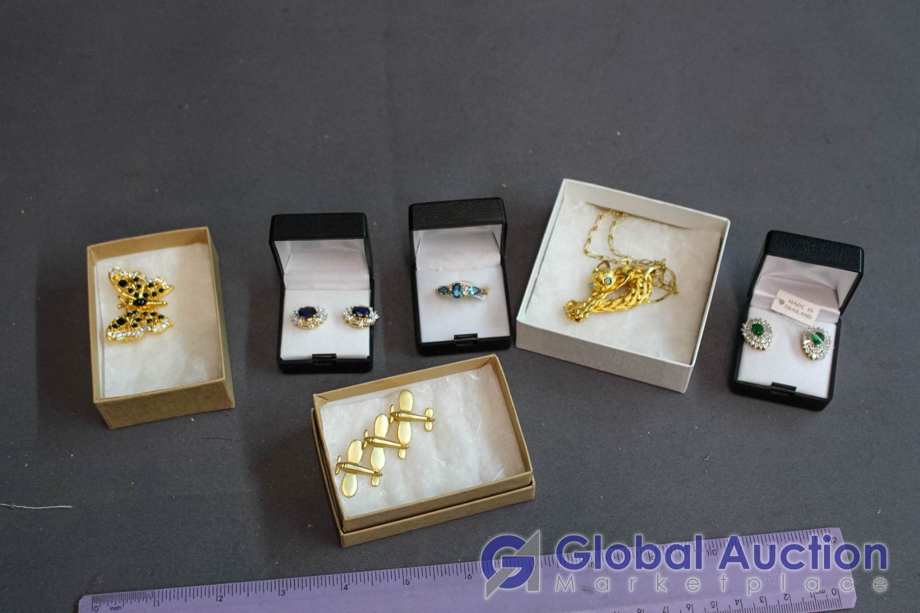 Lot of Jewellery - Ring, (2) Sets of Earrings, (2) Broaches, Necklace