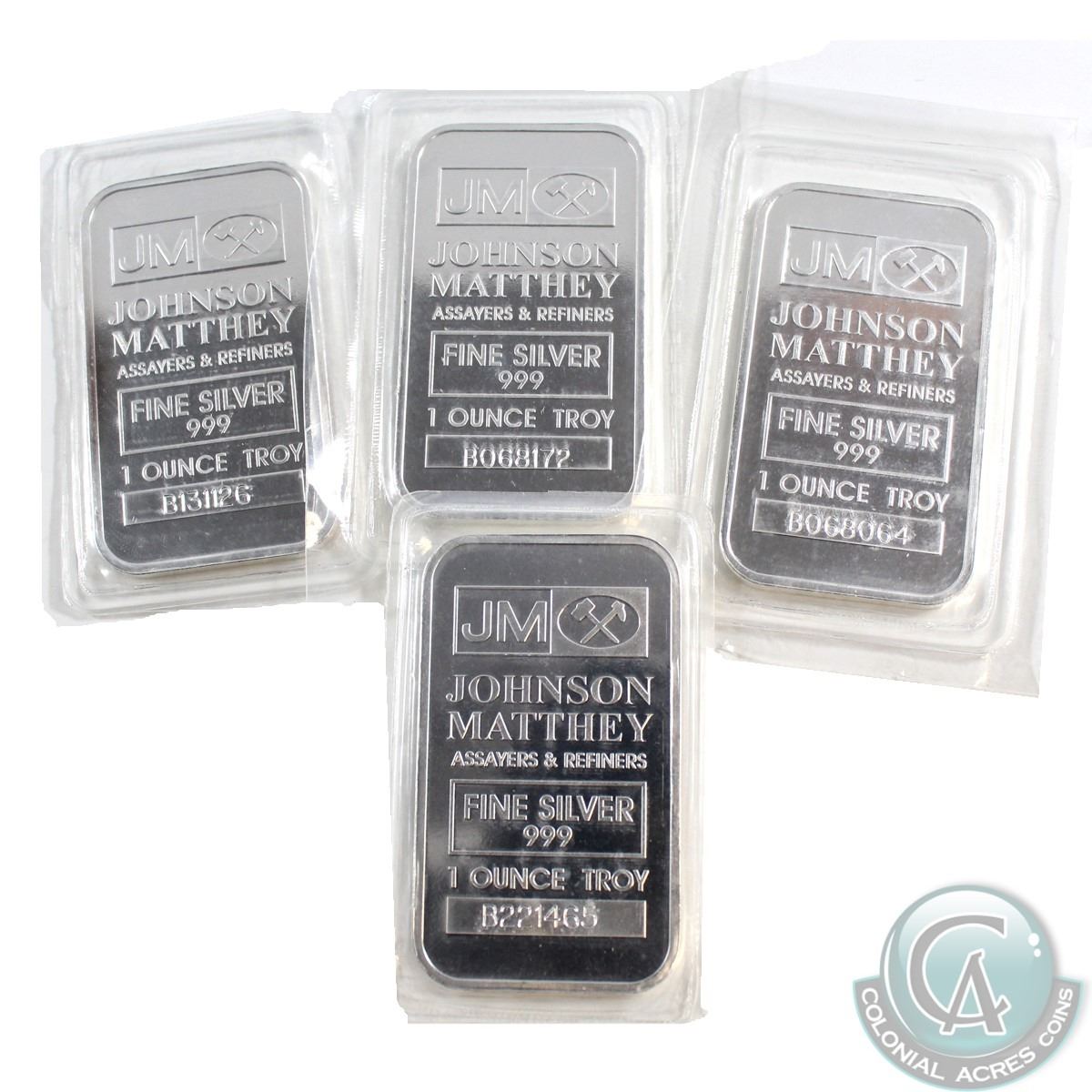 Lot of Johnson Matthey 1oz Fine Silver Bars 'B Series' Sealed in Original Wrap (TAX Exempt). 4pcs.