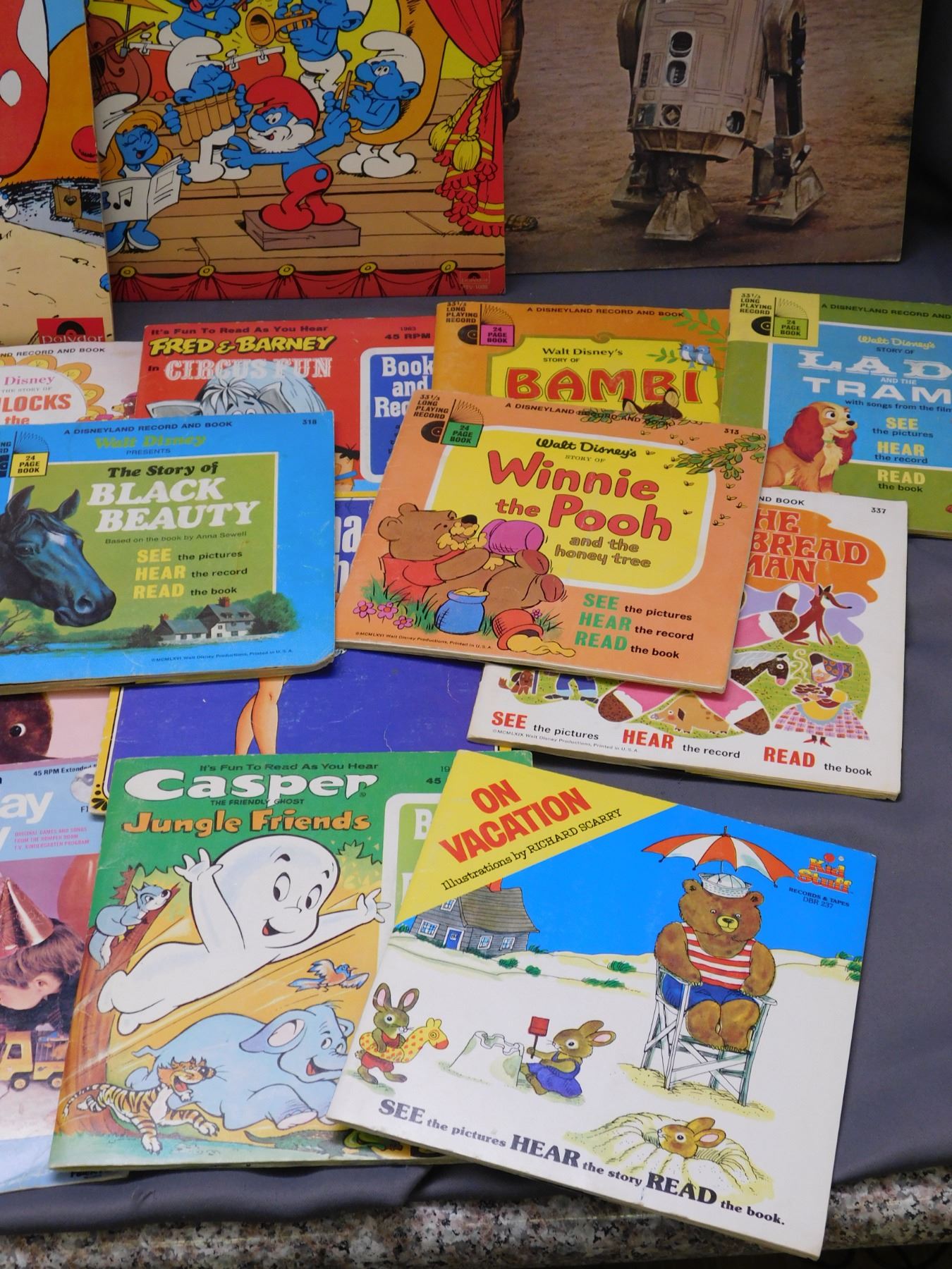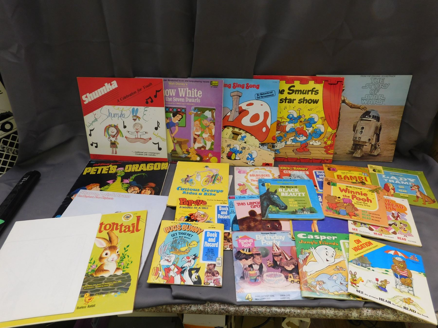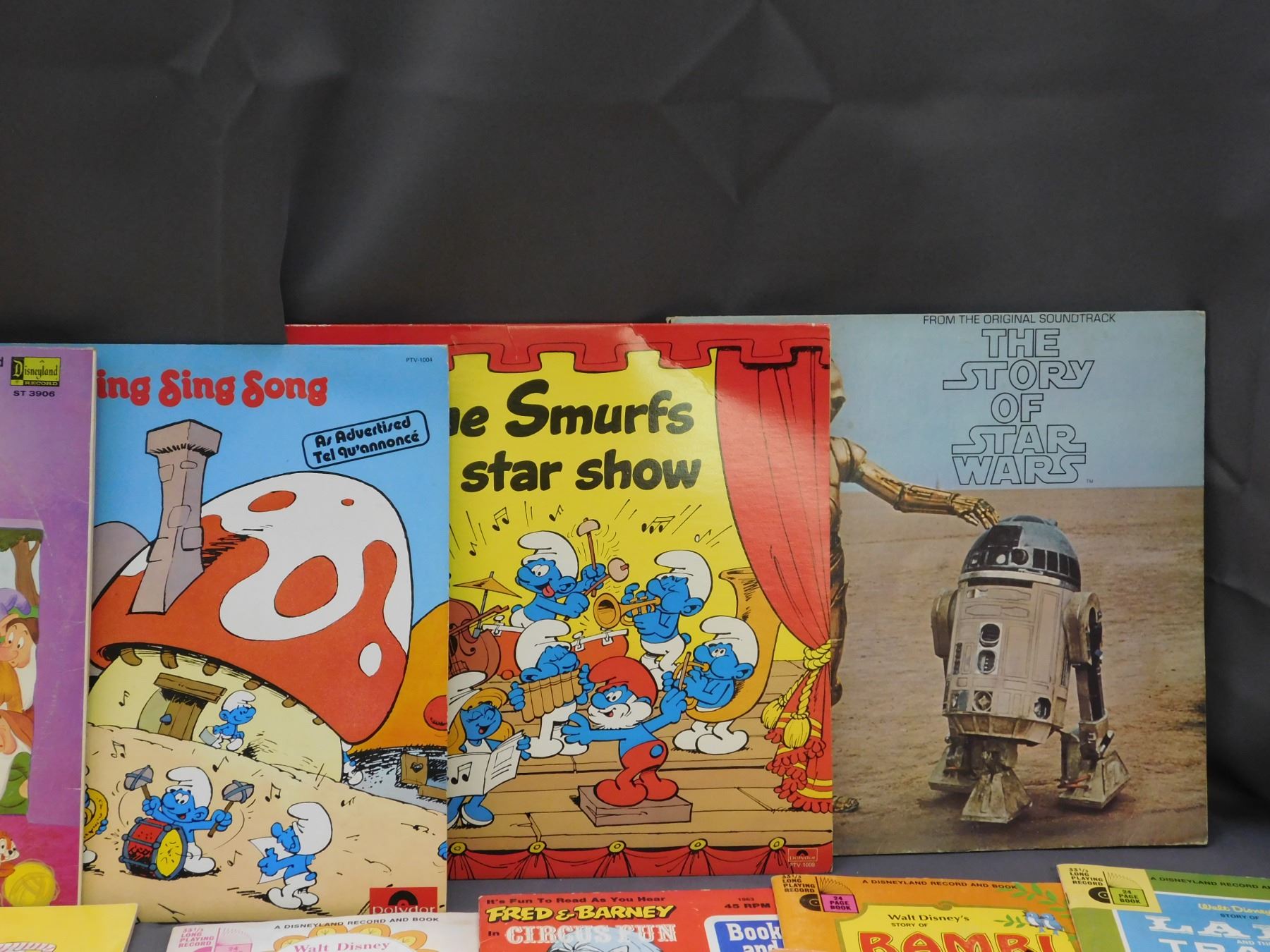 Lot of Kids Records LPs, Books & Records 45s, Star Wars, Smurfs, Snow White, Etc