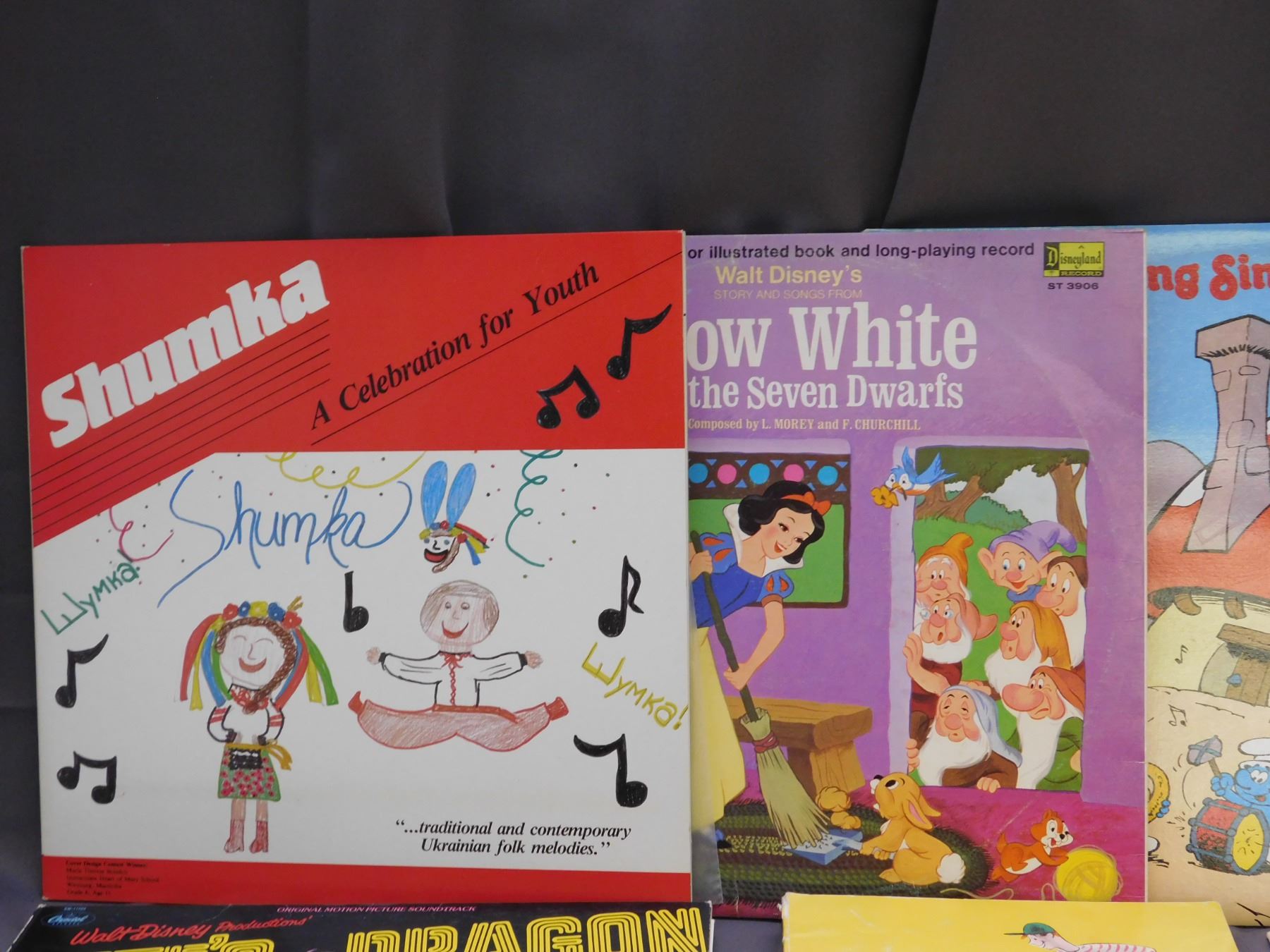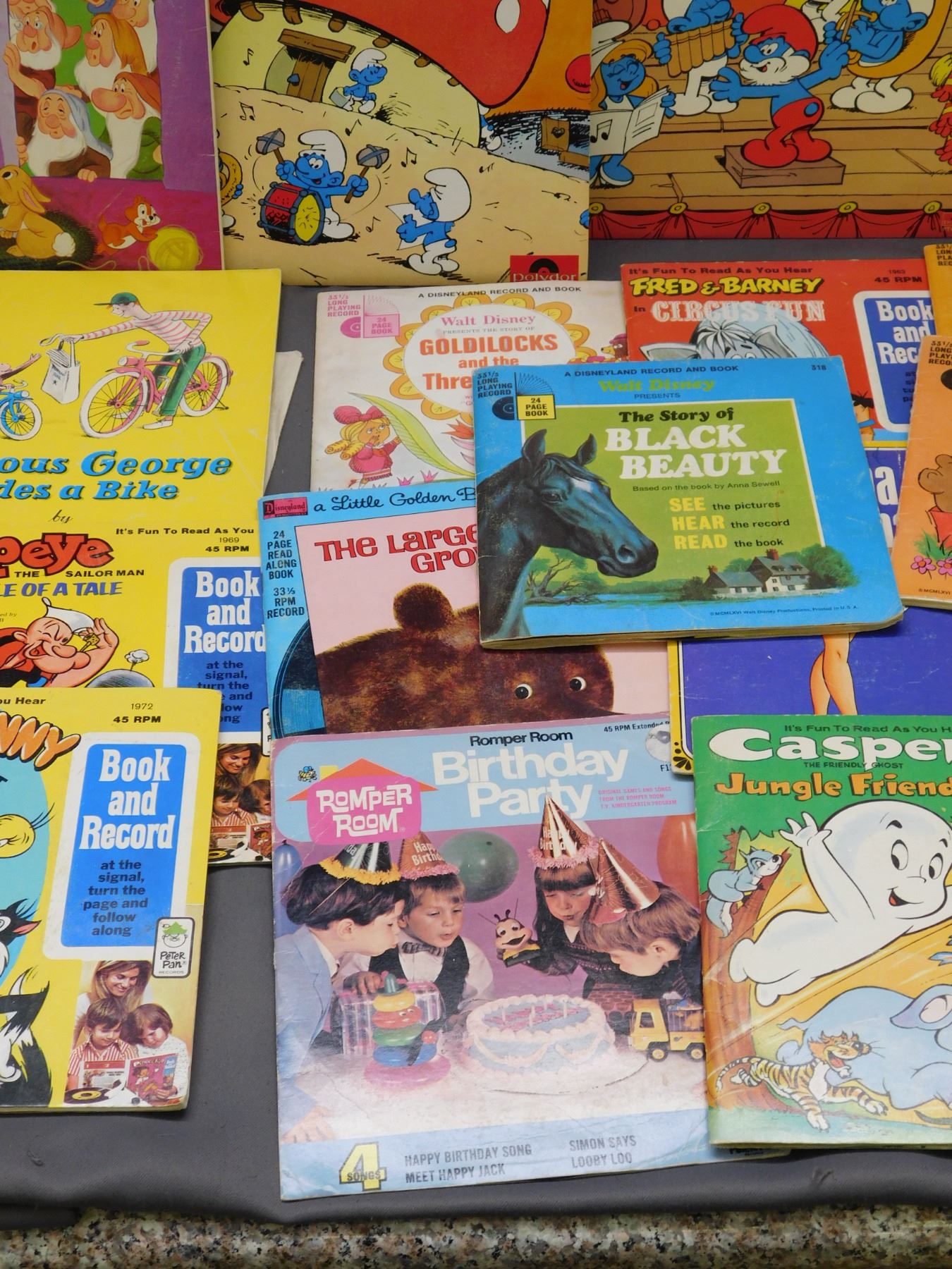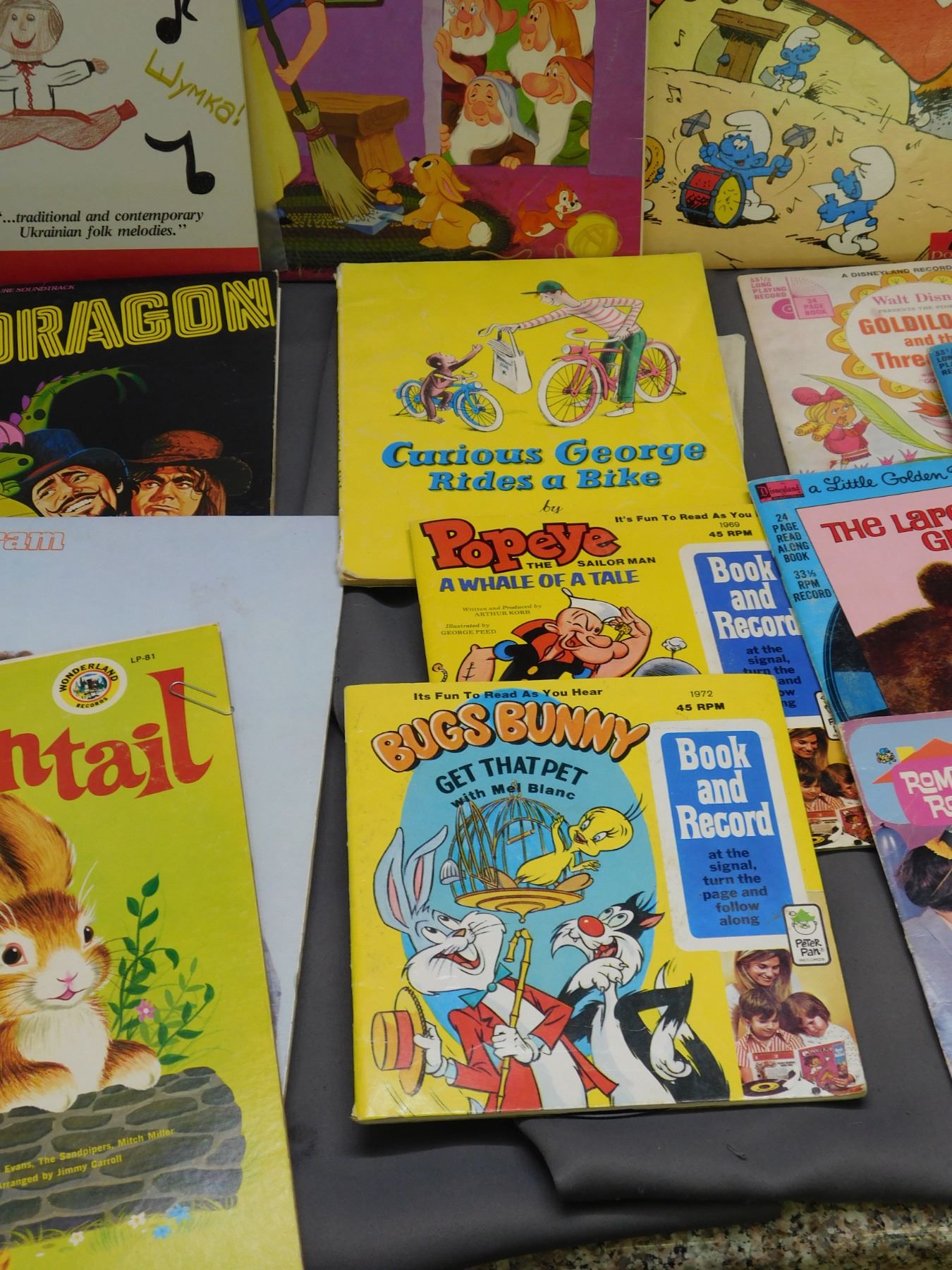Lot of Kids Records LPs, Books & Records 45s, Star Wars, Smurfs, Snow White, Etc