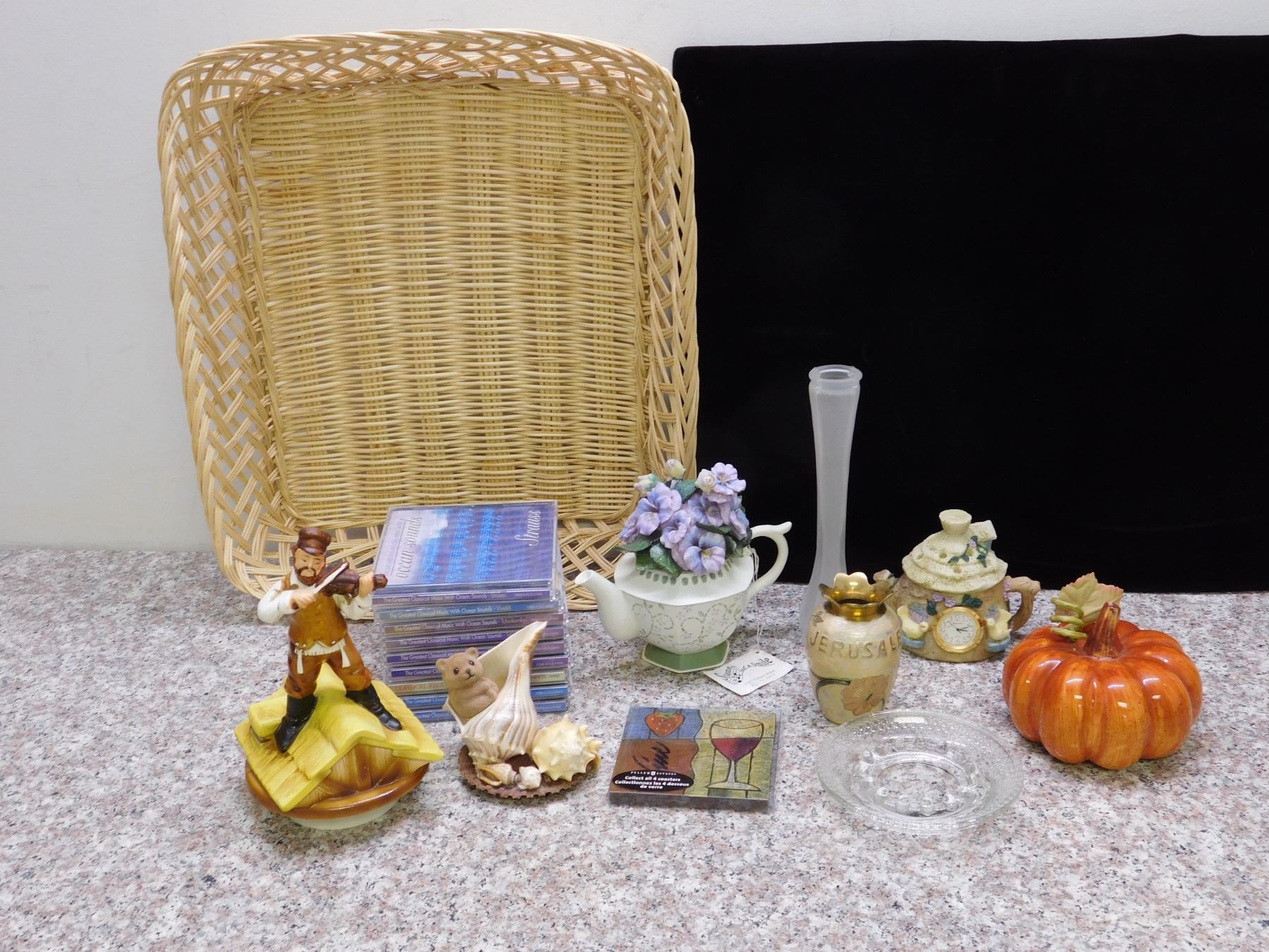 Lot of Knick Knacks END OF THE RUN PILE Misc Ceramic, Figures, Basket, Classical CDs, Vases