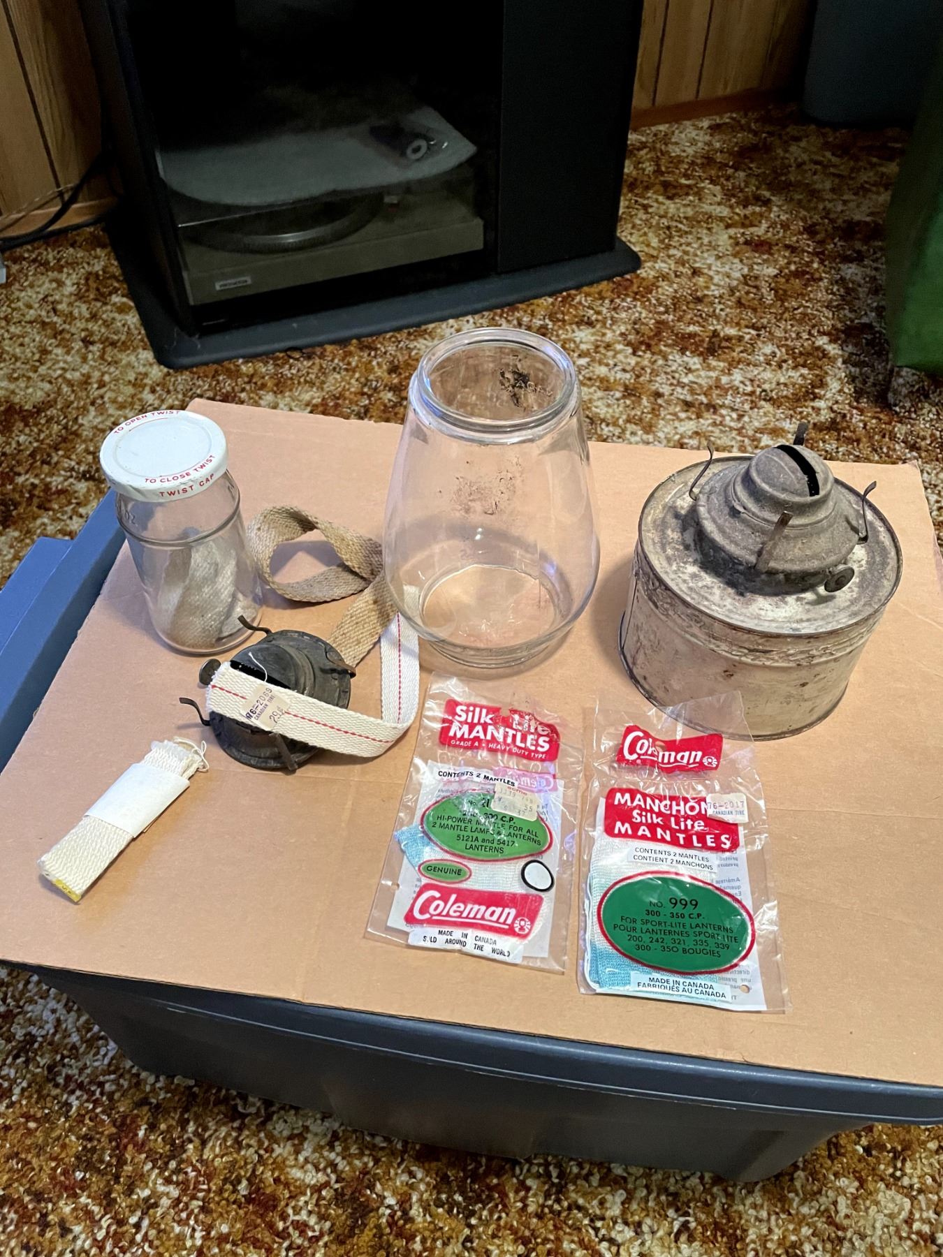 Lot of Lantern Items. (2) Coleman Mantles, (4) Wicks, Metal Base, Lamp Bulb, Wick Base.