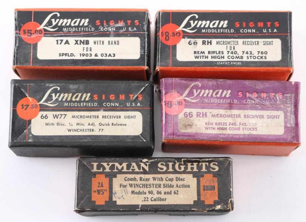 includes models: two 66RH, 66W77, 17AXNB globe front sight & 2AWS, all in original factory boxes. All very good to excellent condition.