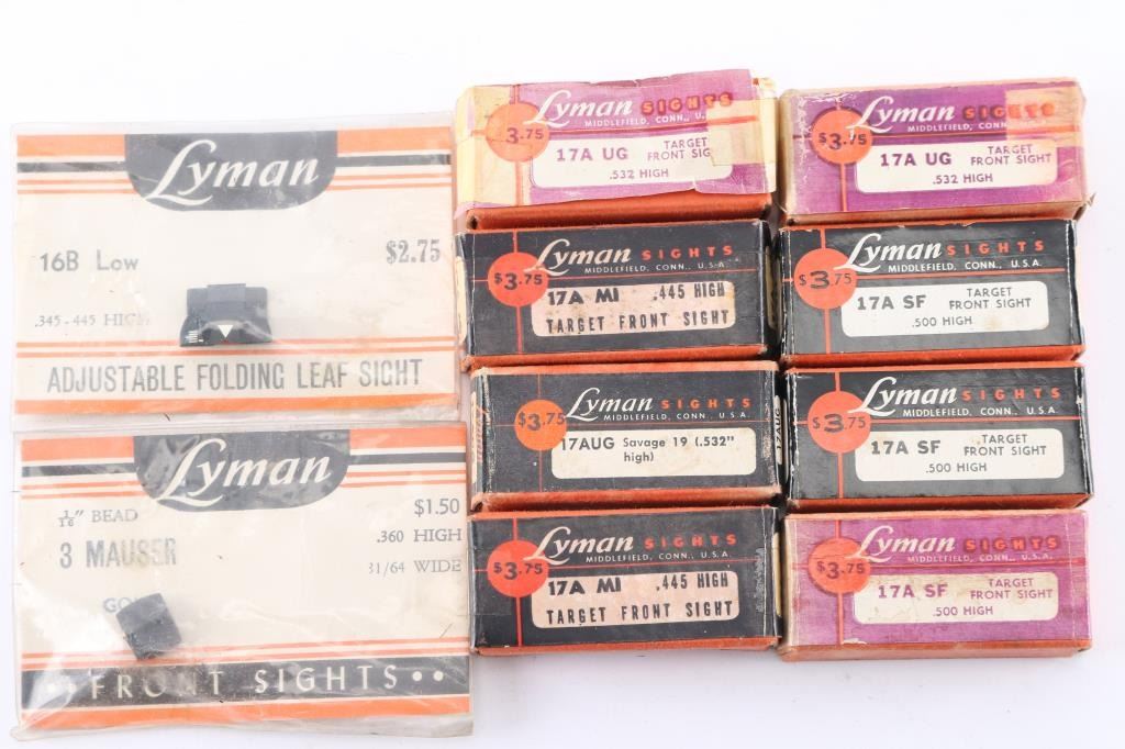 includes models: four of 17A SF, two of 17A UG, 17AUG and 17A MI, 3 Mauser Gold and 16B Low adjustable folding leaf rear sight, all in original factory boxes. All very good to excellent condition.