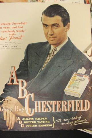 Lot of color magazine advertisements featuring James Stewart, Marilyn Monroe, John Wane, Gary Cooper, Ronald Reagan and many more. Ads include cigarettes, makeup, beer, etc. This is a unique collection with dates of ads being in the 1940s.