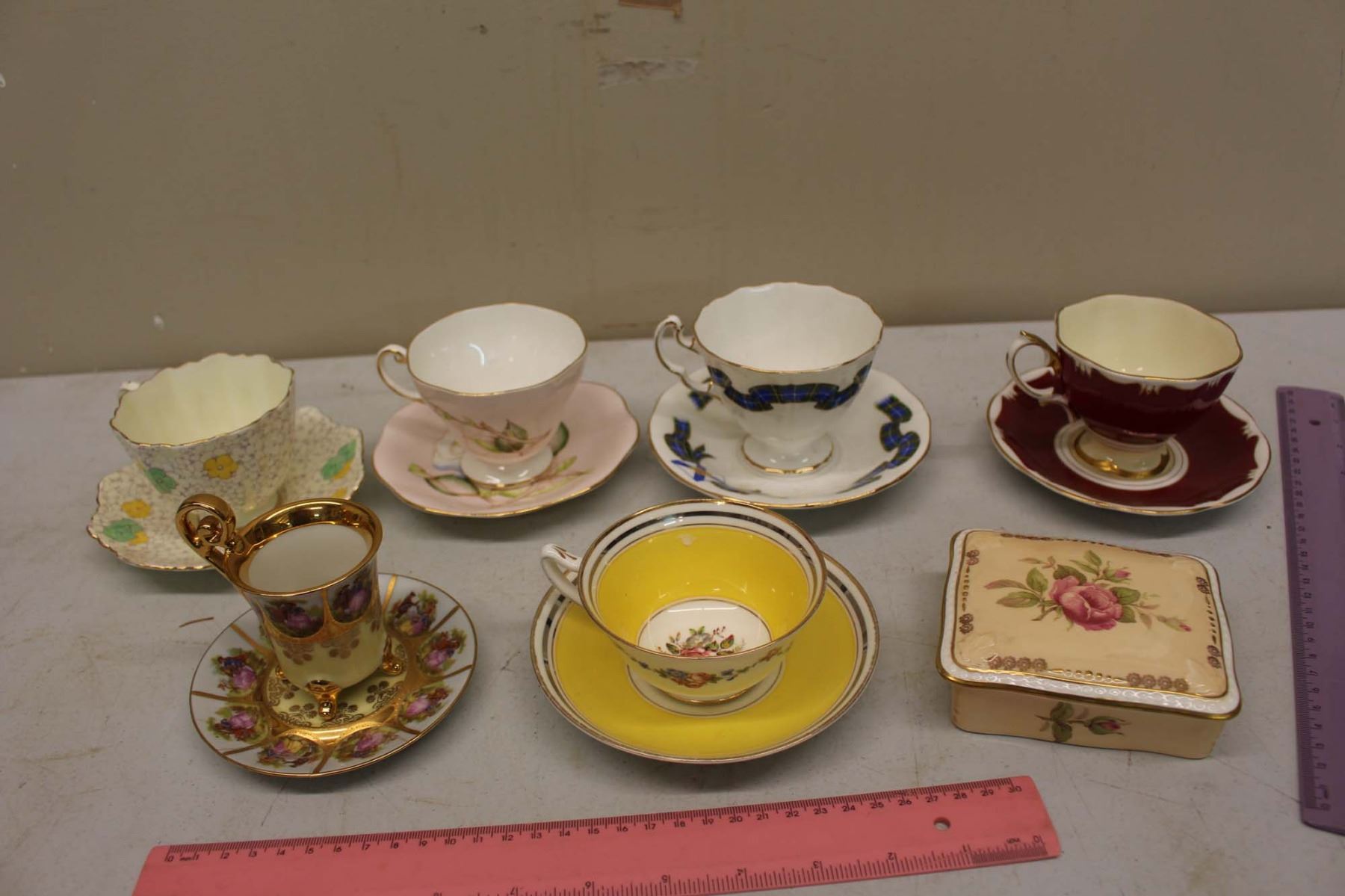 Lot of Matching Bone China Tea Cups and Saucers (6) Plus a Trinket Box
